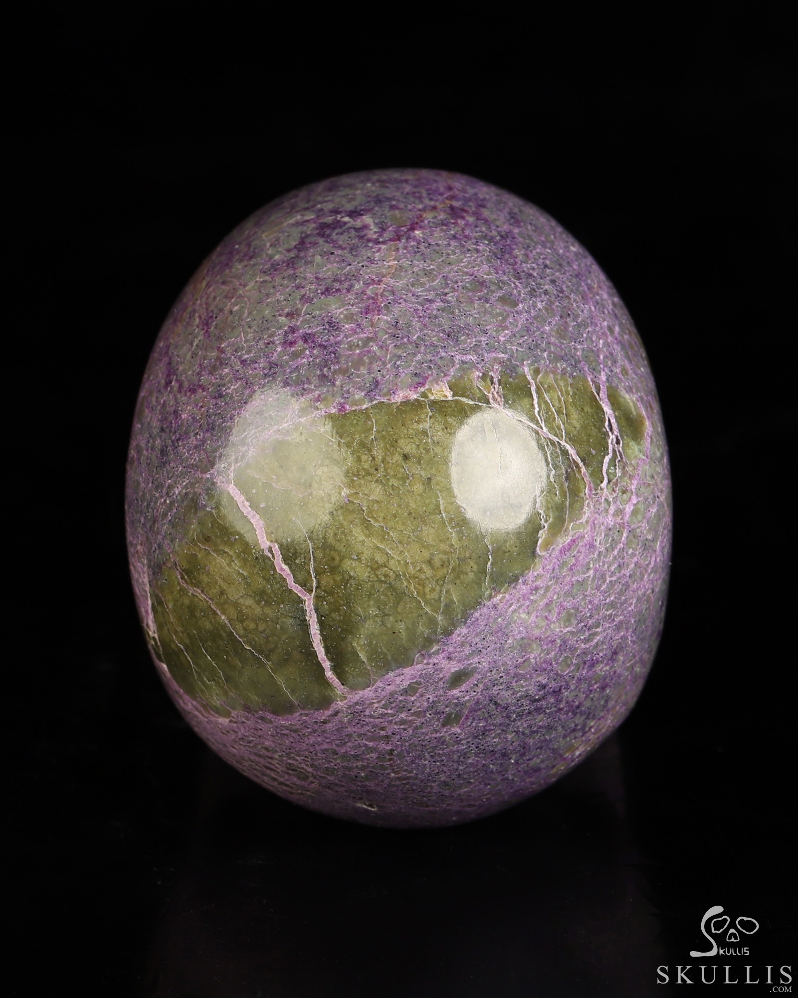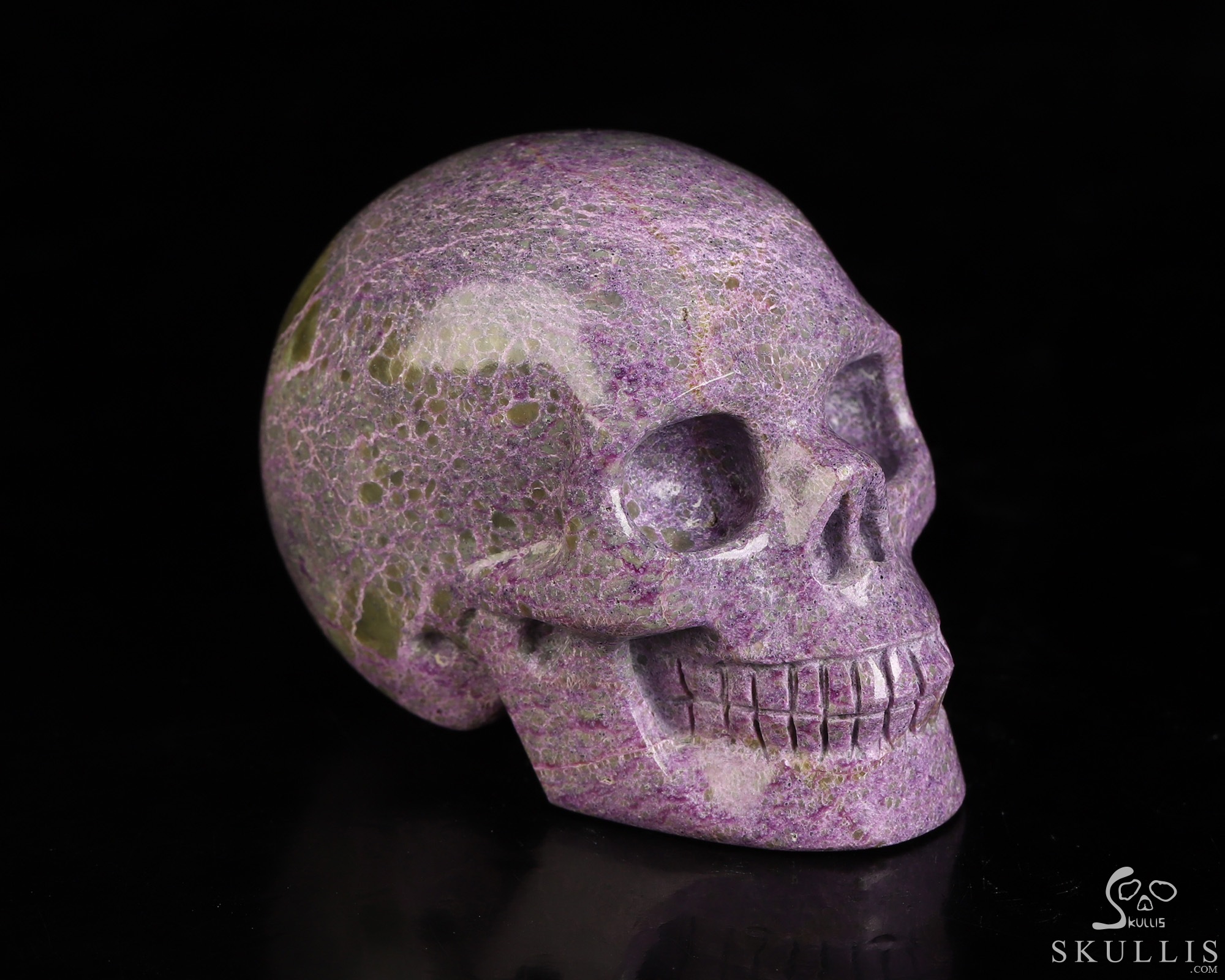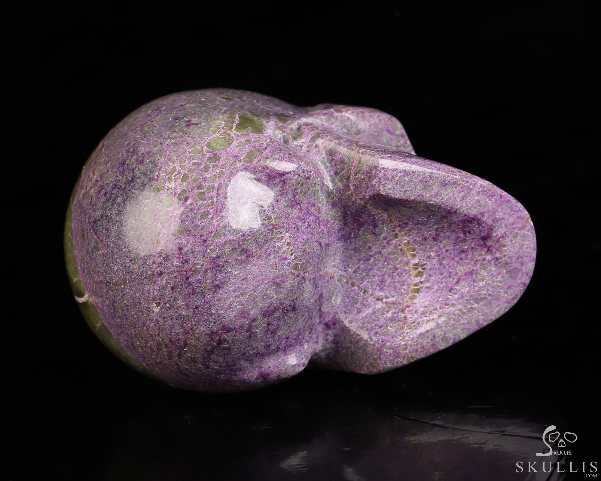 Gemstone 4.1" Stichtite and Serpentine Hand Carved Crystal Skull, Super Realistic, Crystal Healing