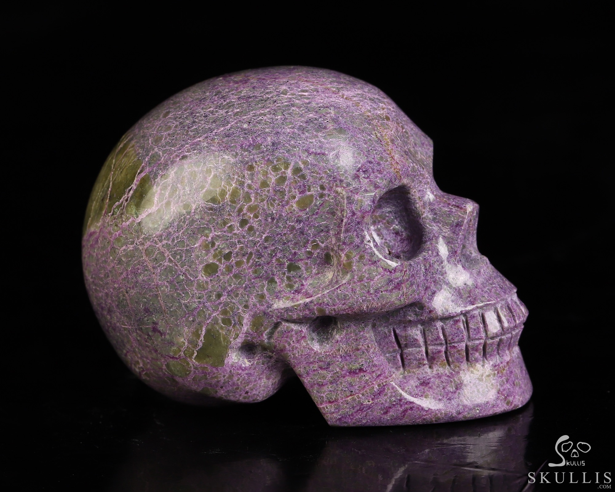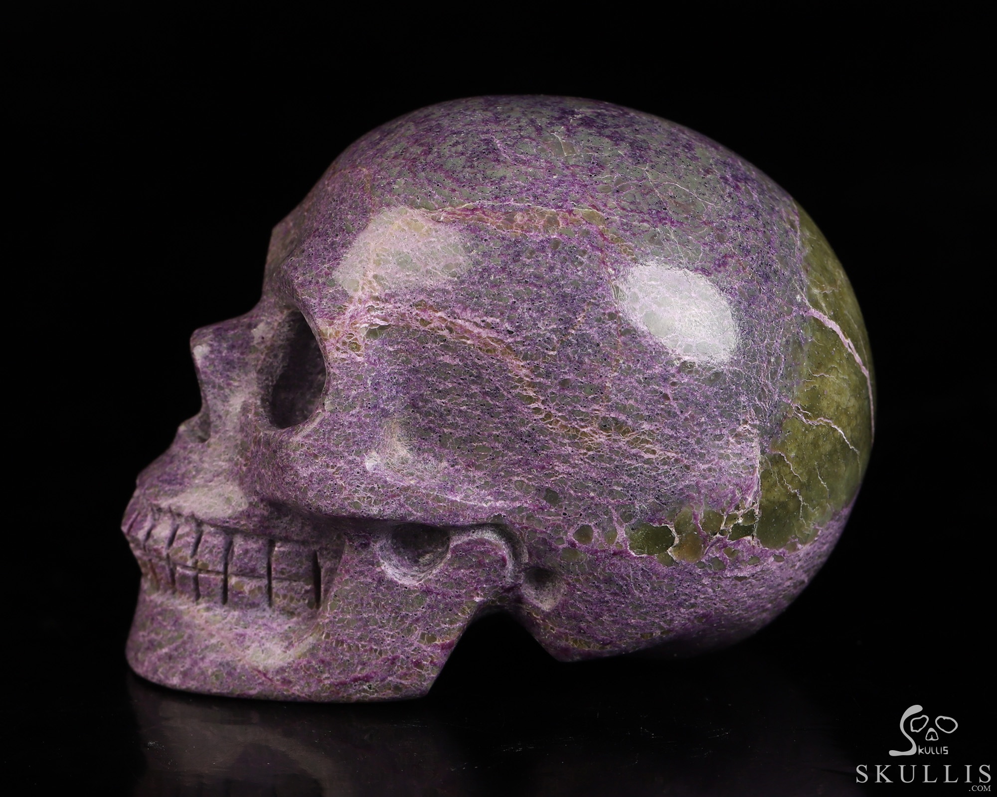 Gemstone Lifesized 7.5" Stichtite and Serpentine Carved Crystal Skull,Super Realistic, Crystal Healing