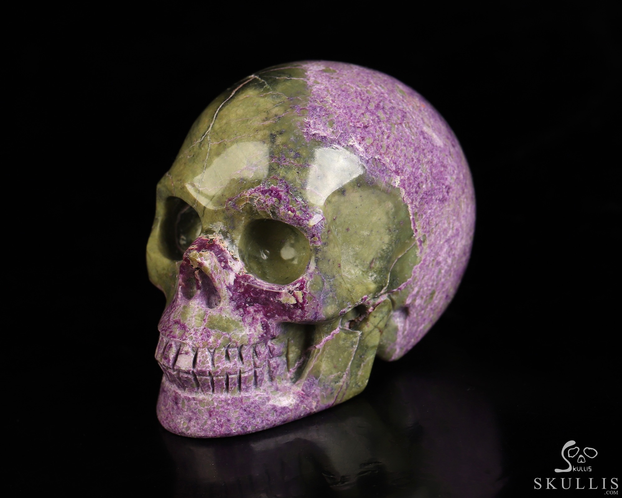Gemstone 4.1" Stichtite and Serpentine Hand Carved Crystal Skull, Super Realistic, Crystal Healing