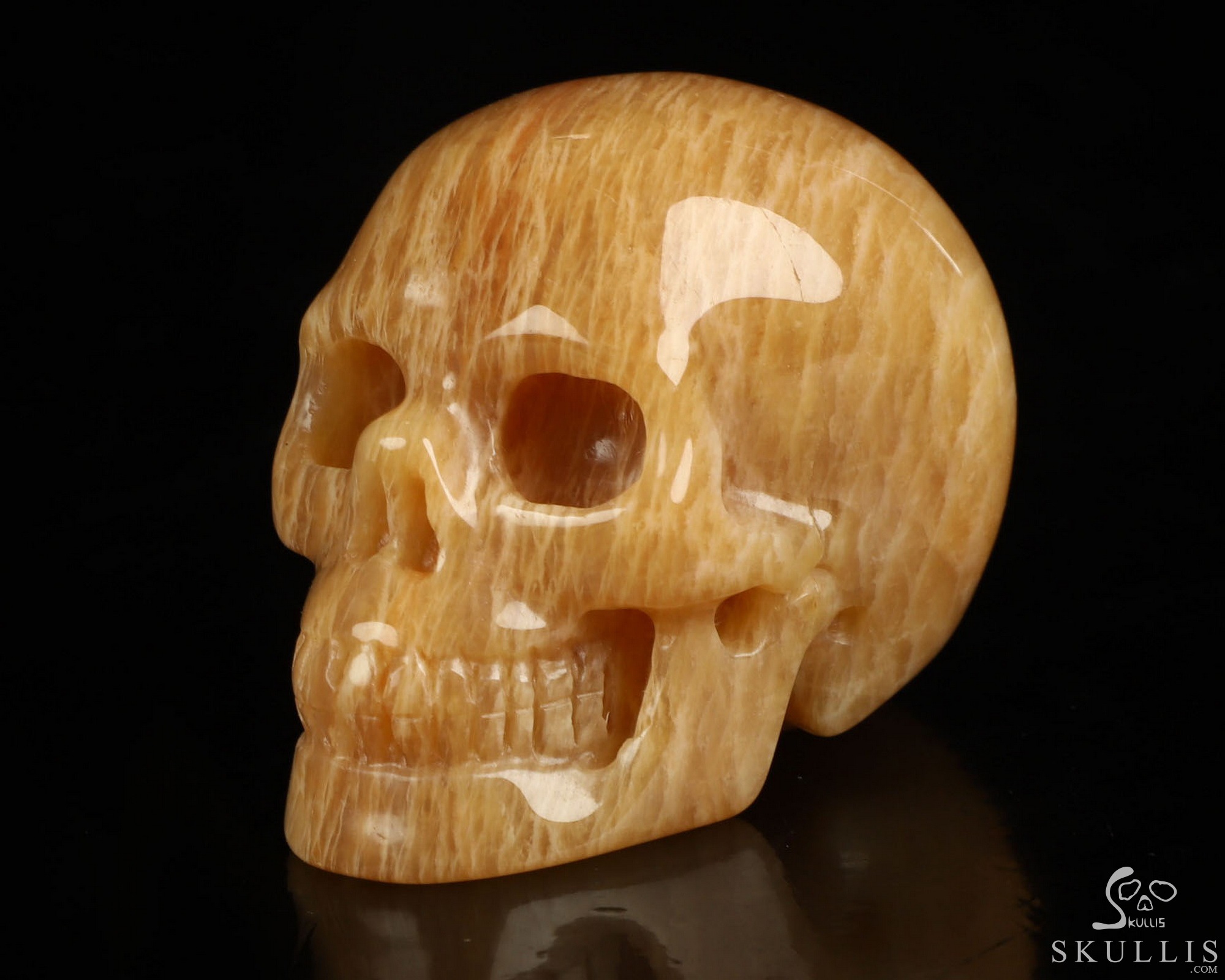 4.1" Sunstone Hand Carved Crystal Skull, Realistic, Crystal Healing