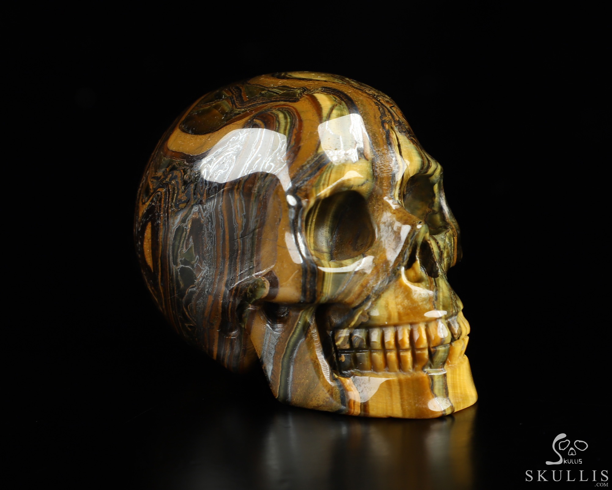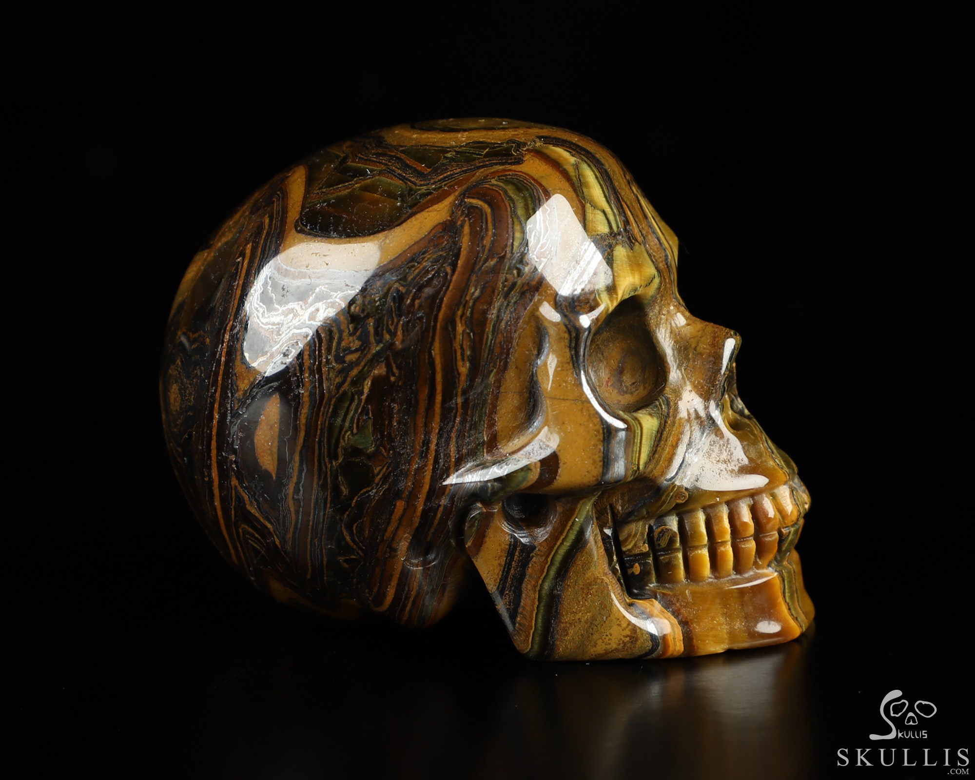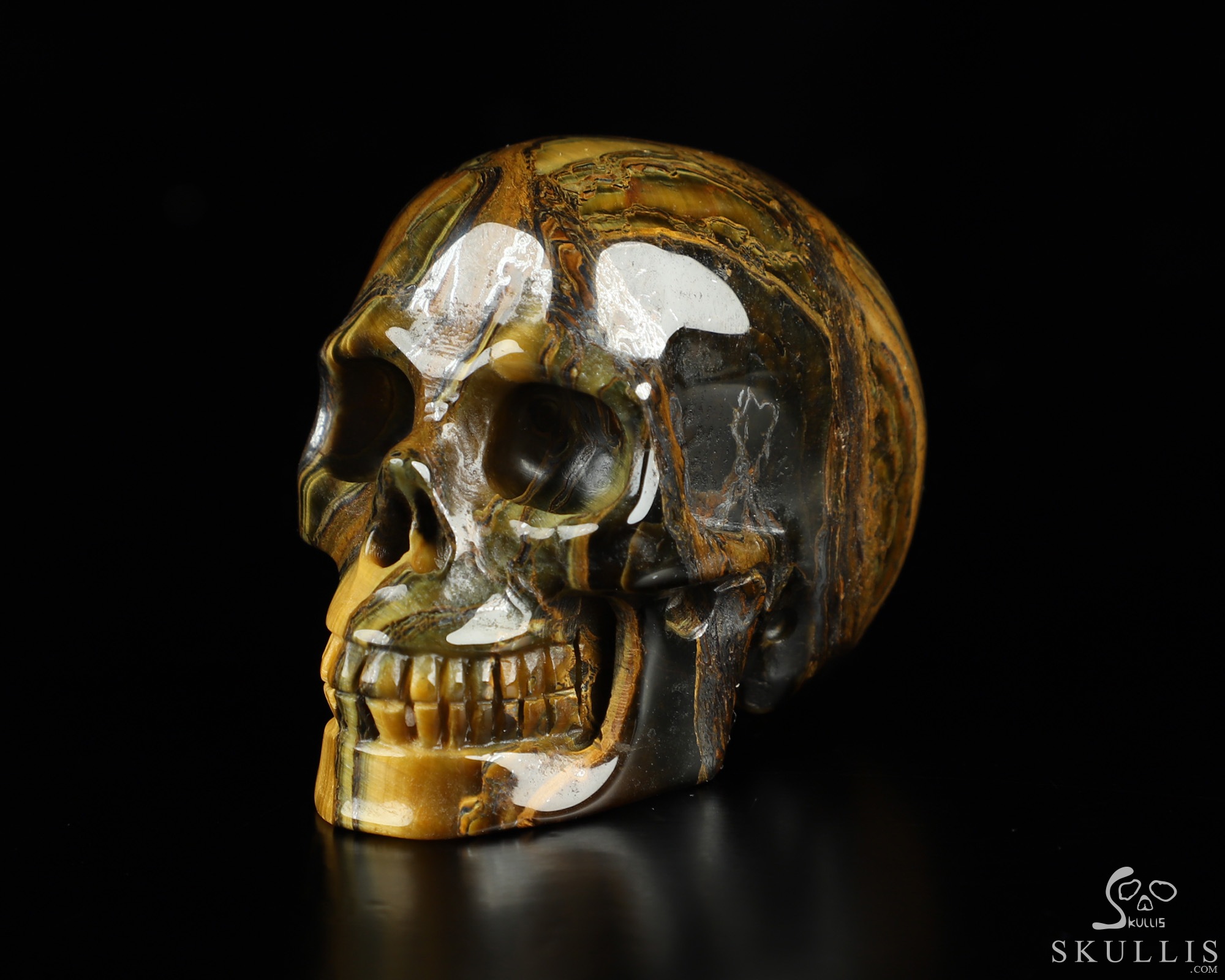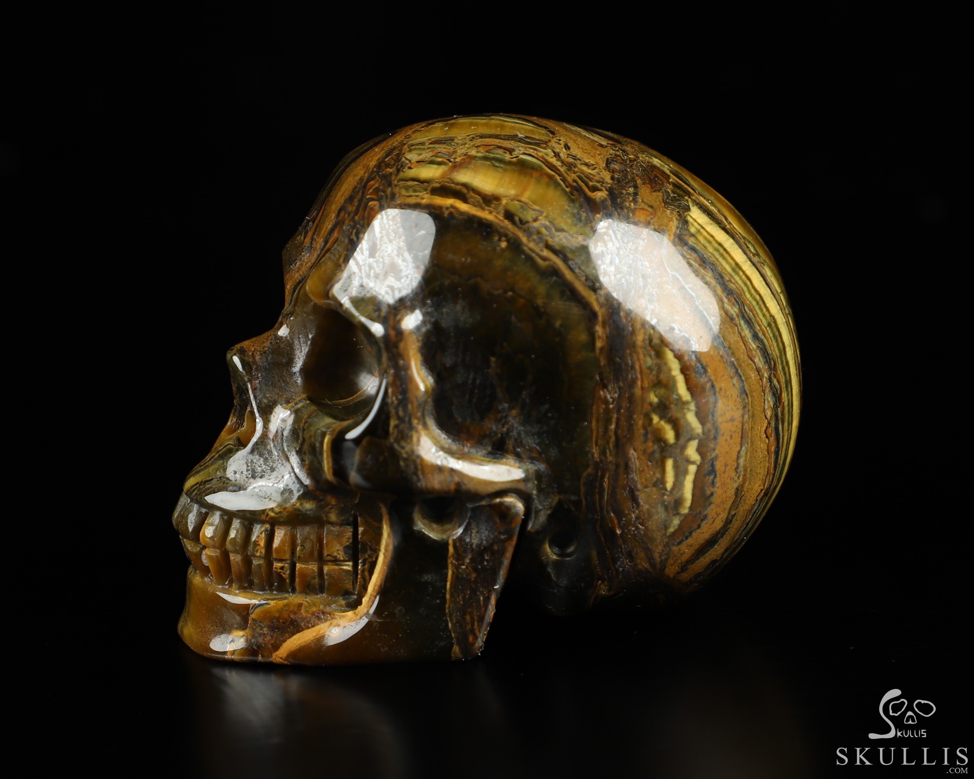 2.0" Tiger Iron Eye Hand Carved Crystal Skull, Realistic, Crystal Healing