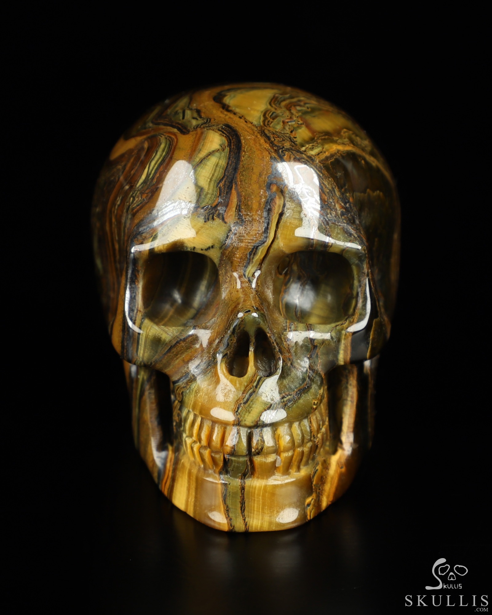 Huge 4.8" Tiger Iron Eye Carved Crystal Skull, Realistic, Crystal Healing