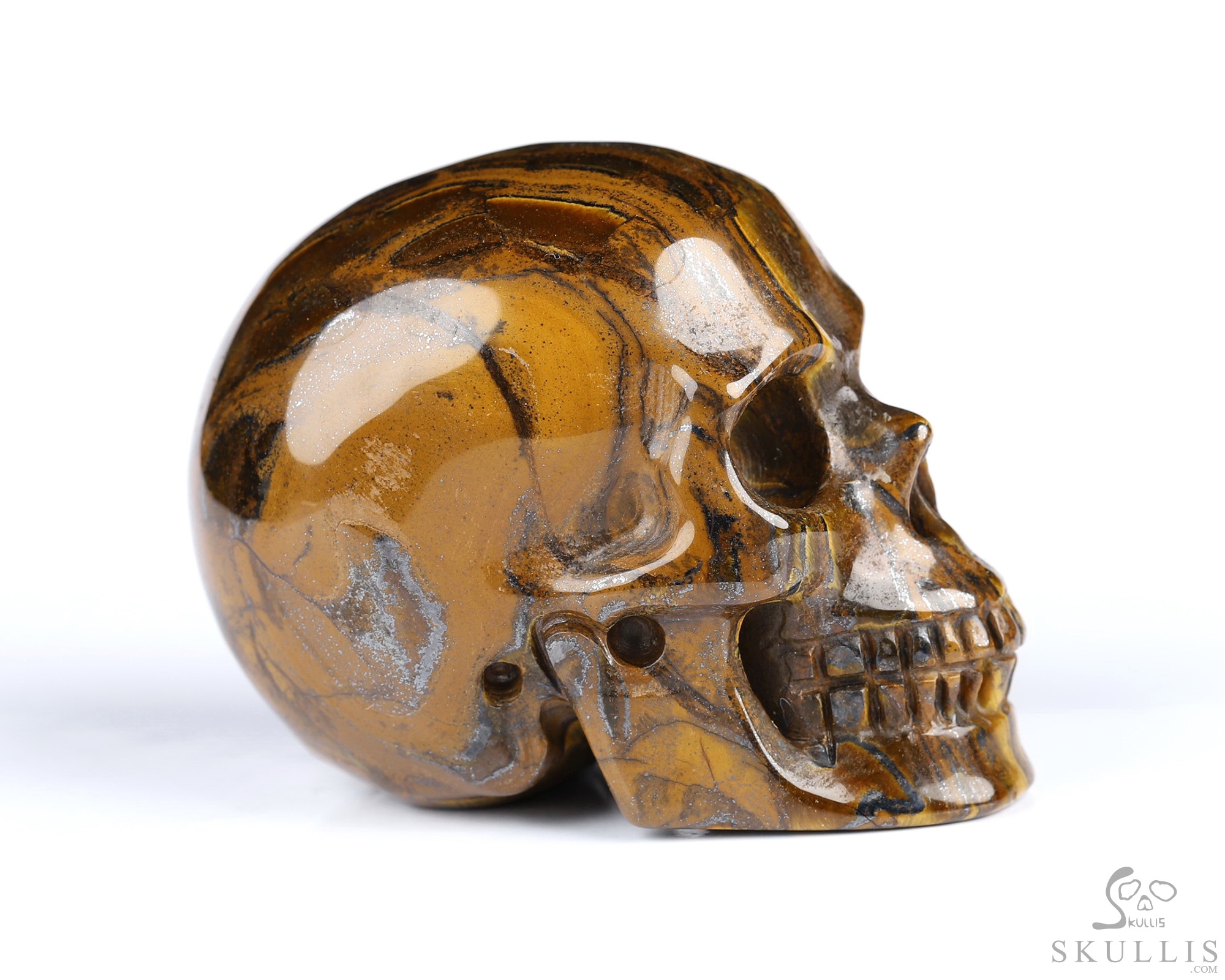 2.0" Tiger Iron Eye Hand Carved Crystal Skull, Realistic, Crystal Healing