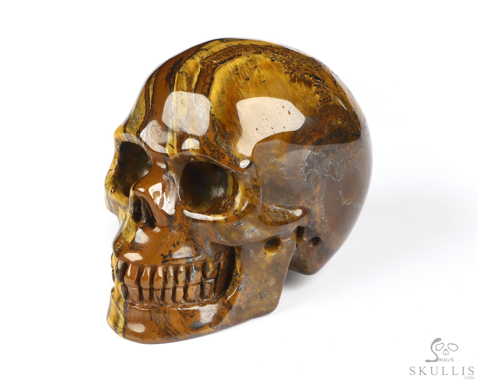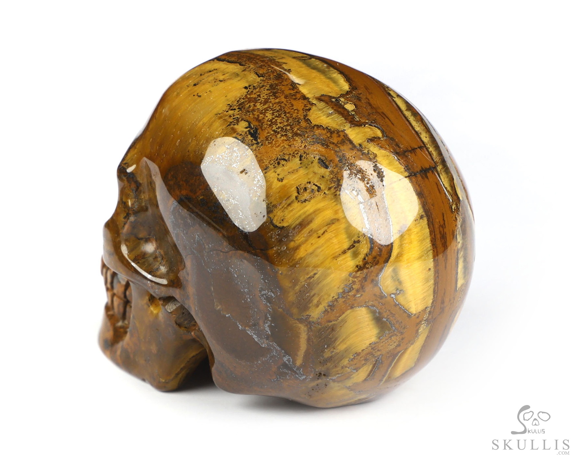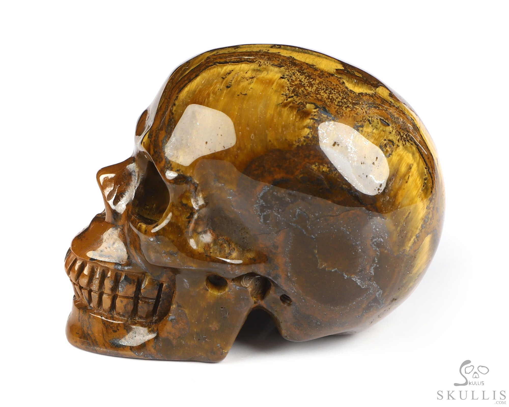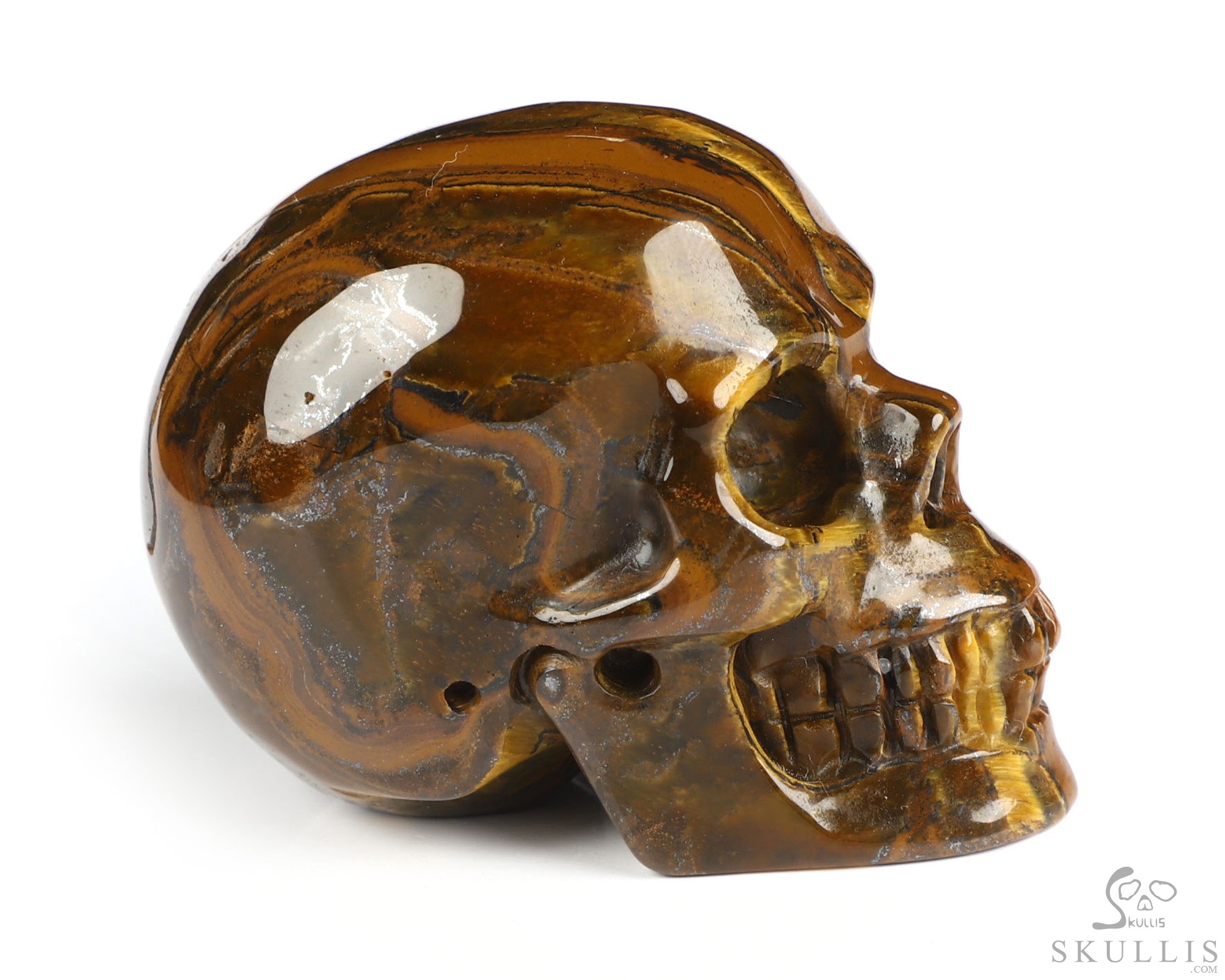 Lifesized 6.9" Tiger Iron Eye Carved Crystal Skull, Realistic, Crystal Healing