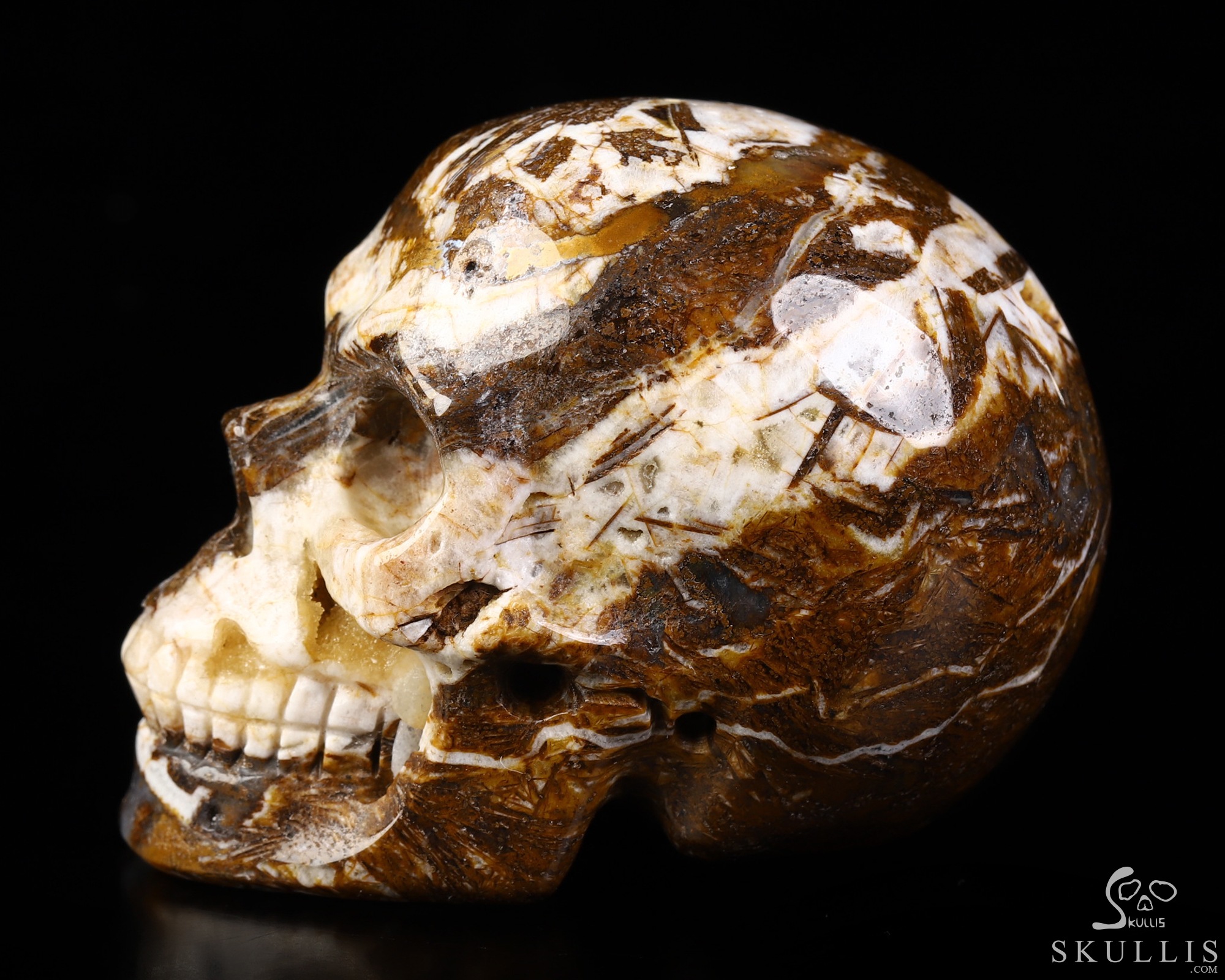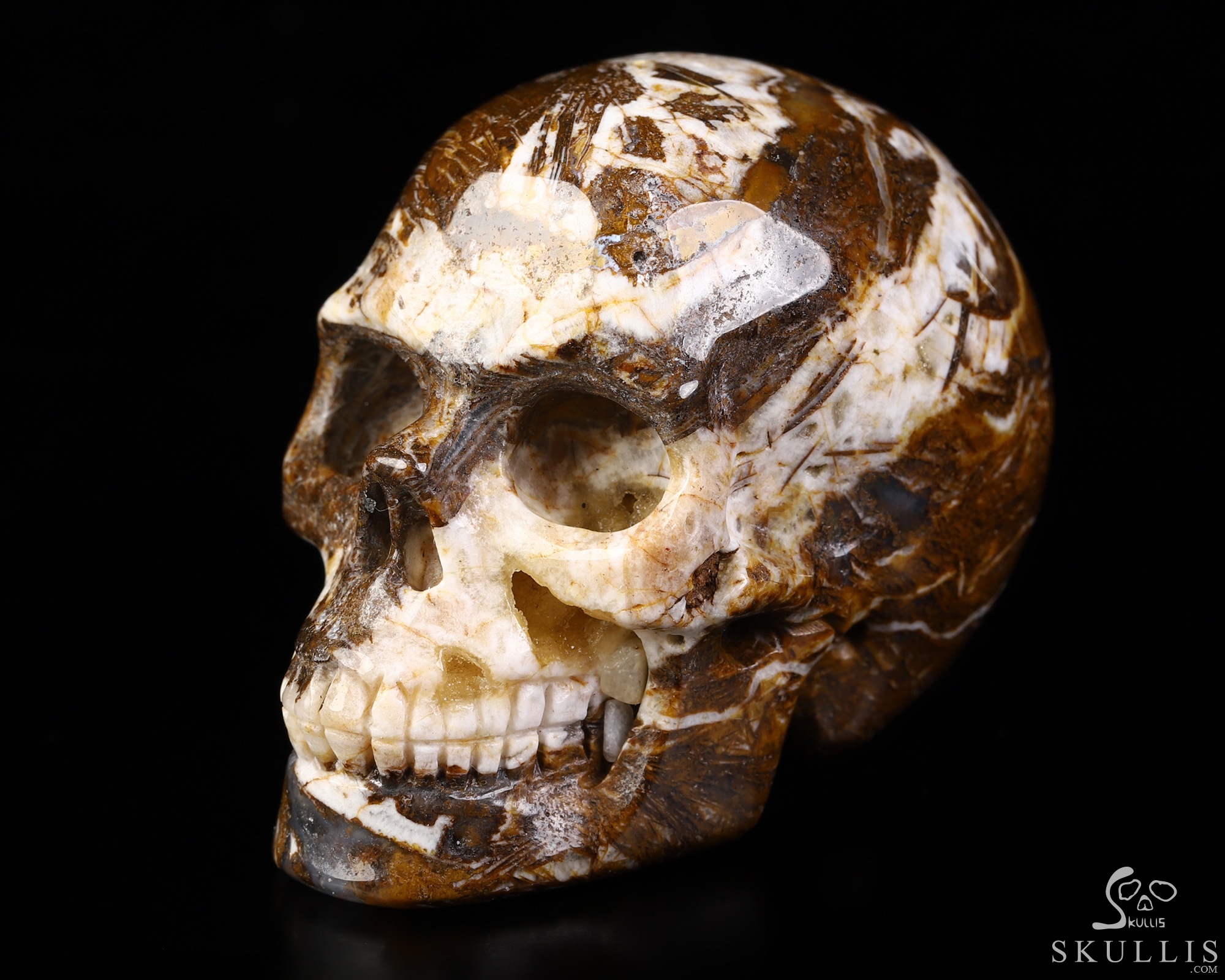 GEODE 2.0" Tree Leaves Agate Carved Crystal Skull,Realistic, Crystal Healing
