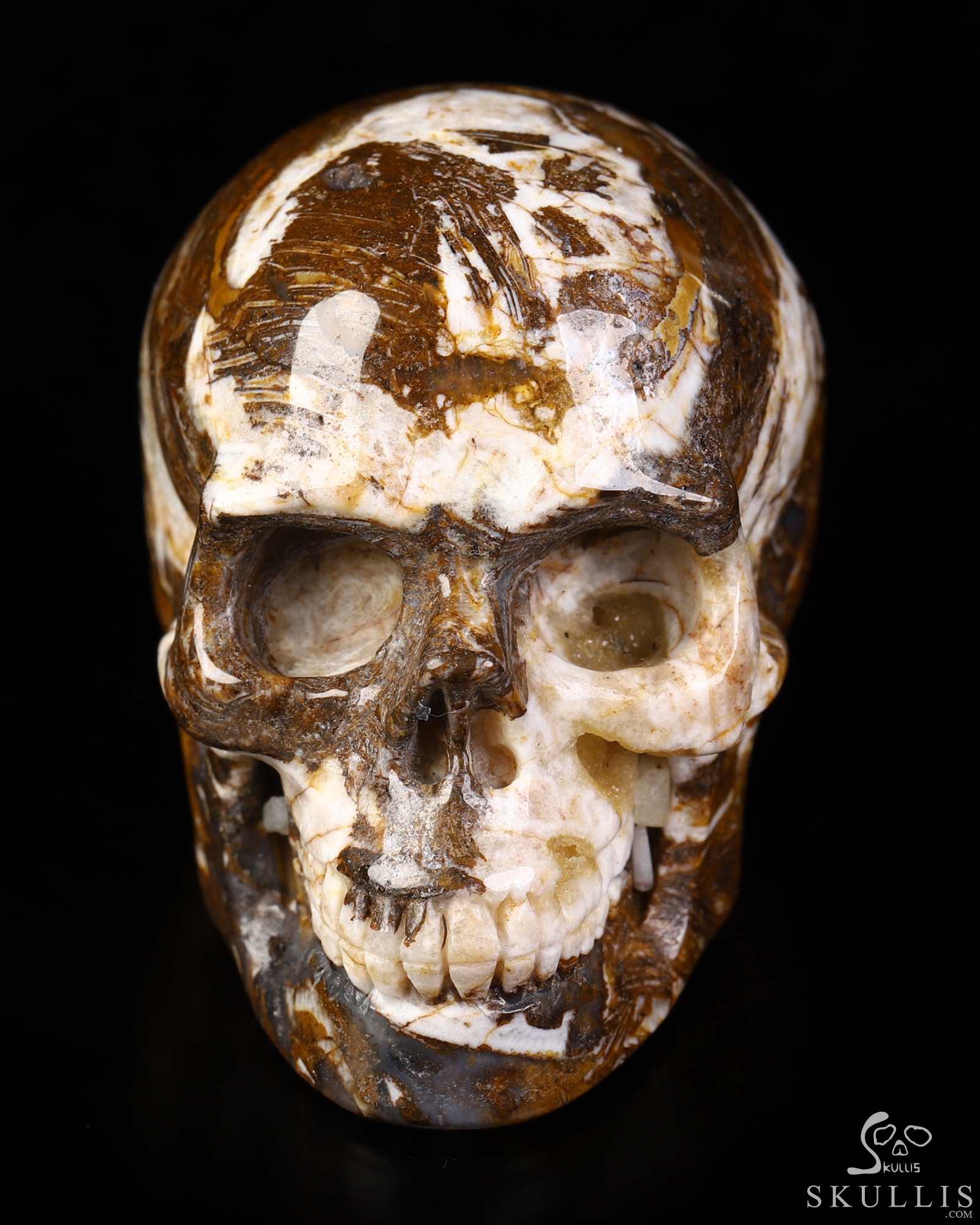 You are looking at a Tree Leaves Agate skull. The skull is 2 inches from front to back.
