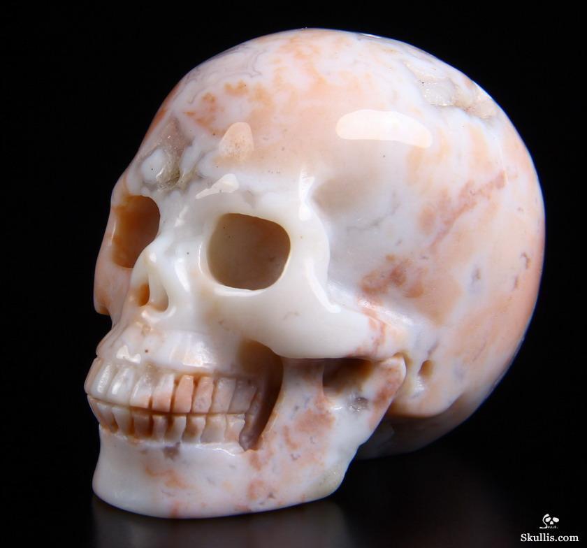 Huge 6.0" Pink Ocean Agate Carved Crystal Skull, Super Realistic