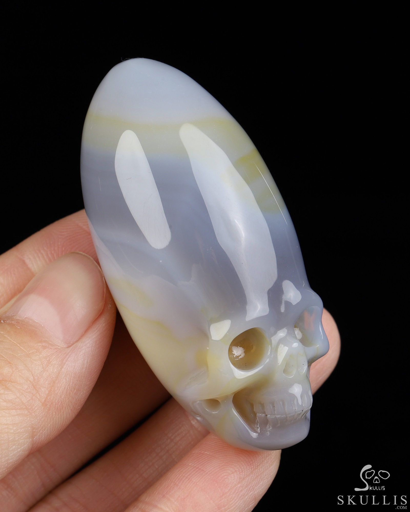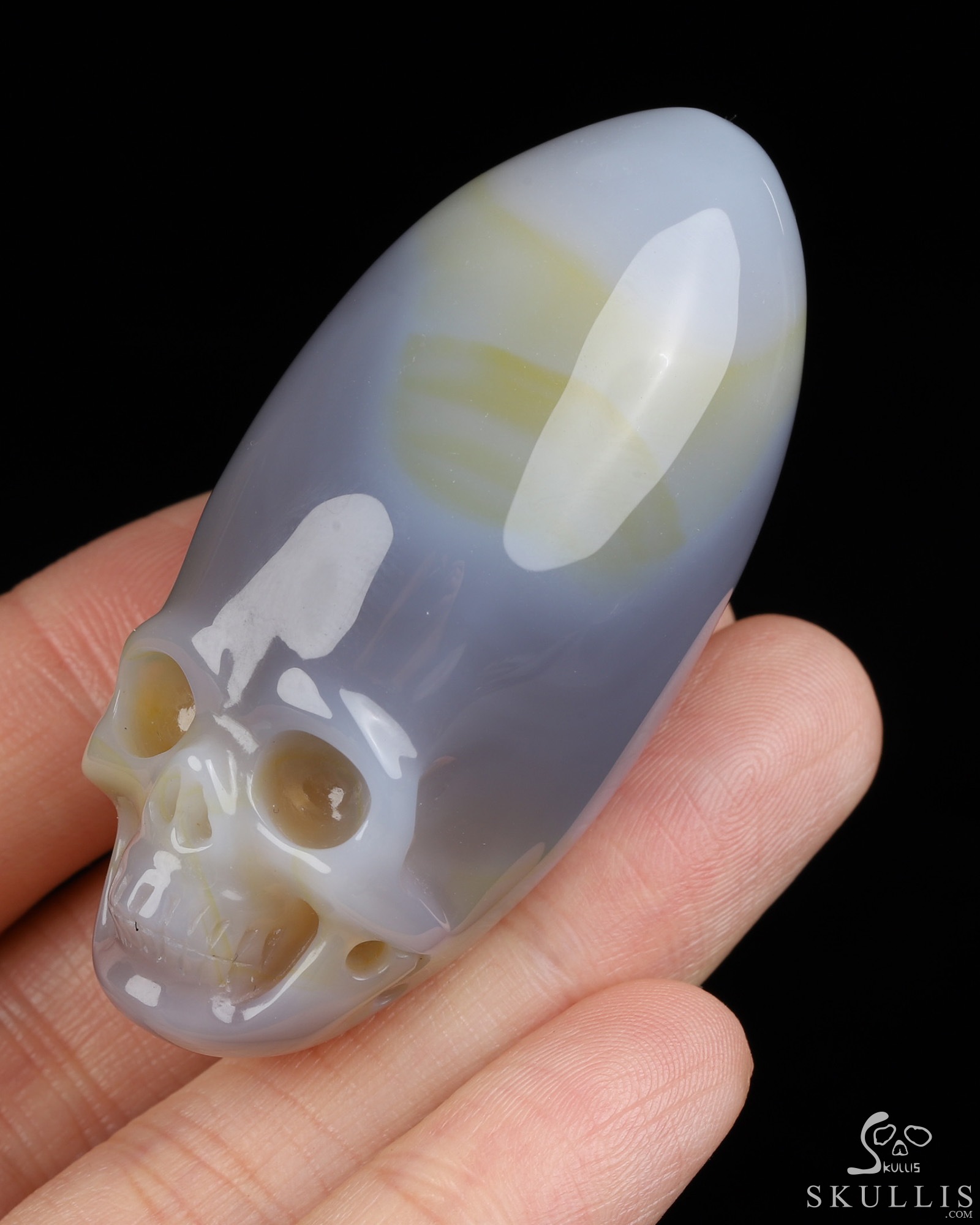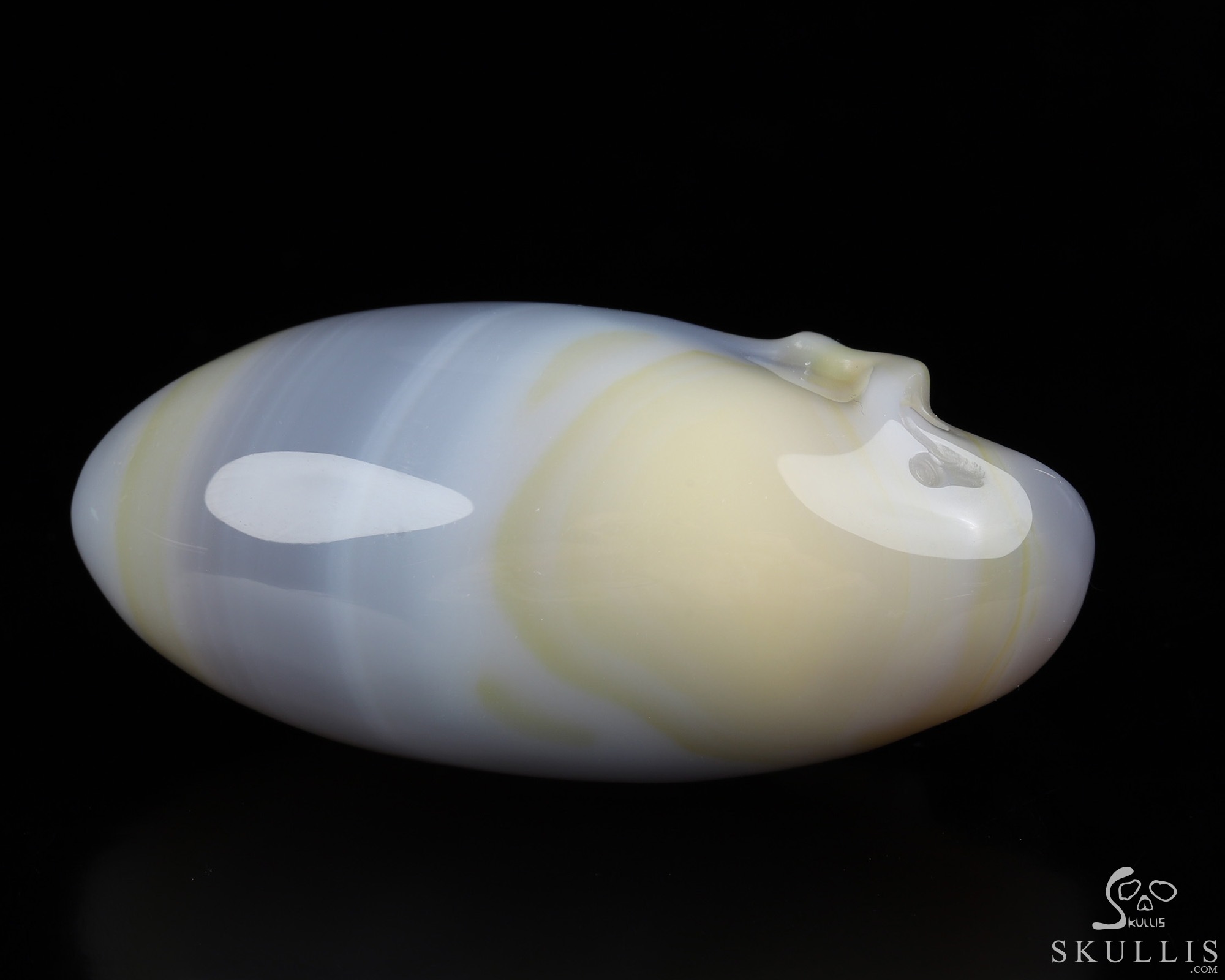 You are looking at a Banded Agate skull. The skull is 2.2 inches from front to back.