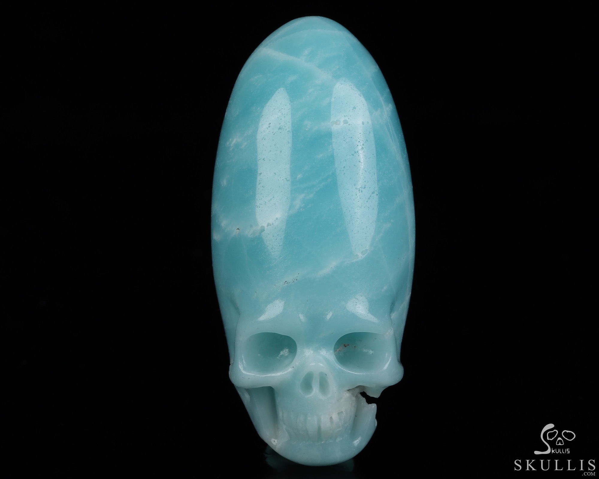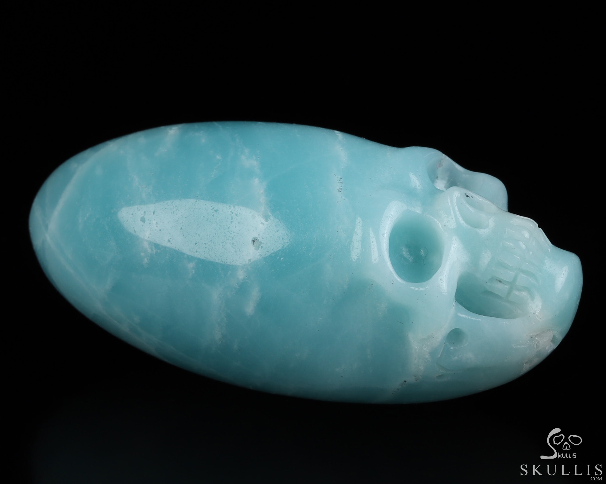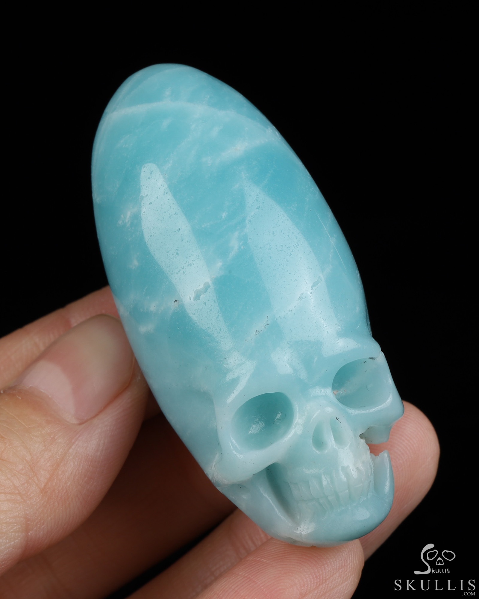 You are looking at a Chinese Amazonite skull. The skull is 2.2 inches from front to back.