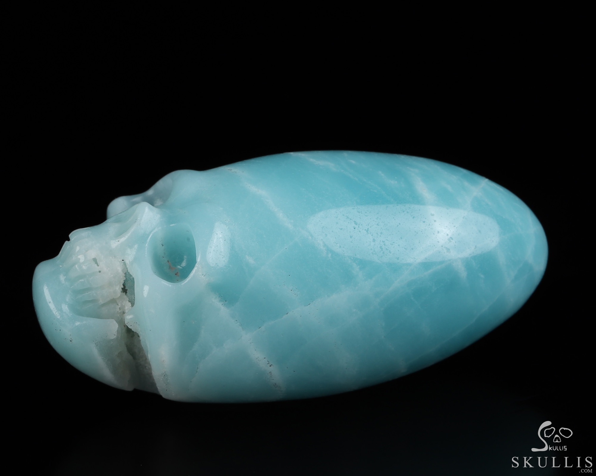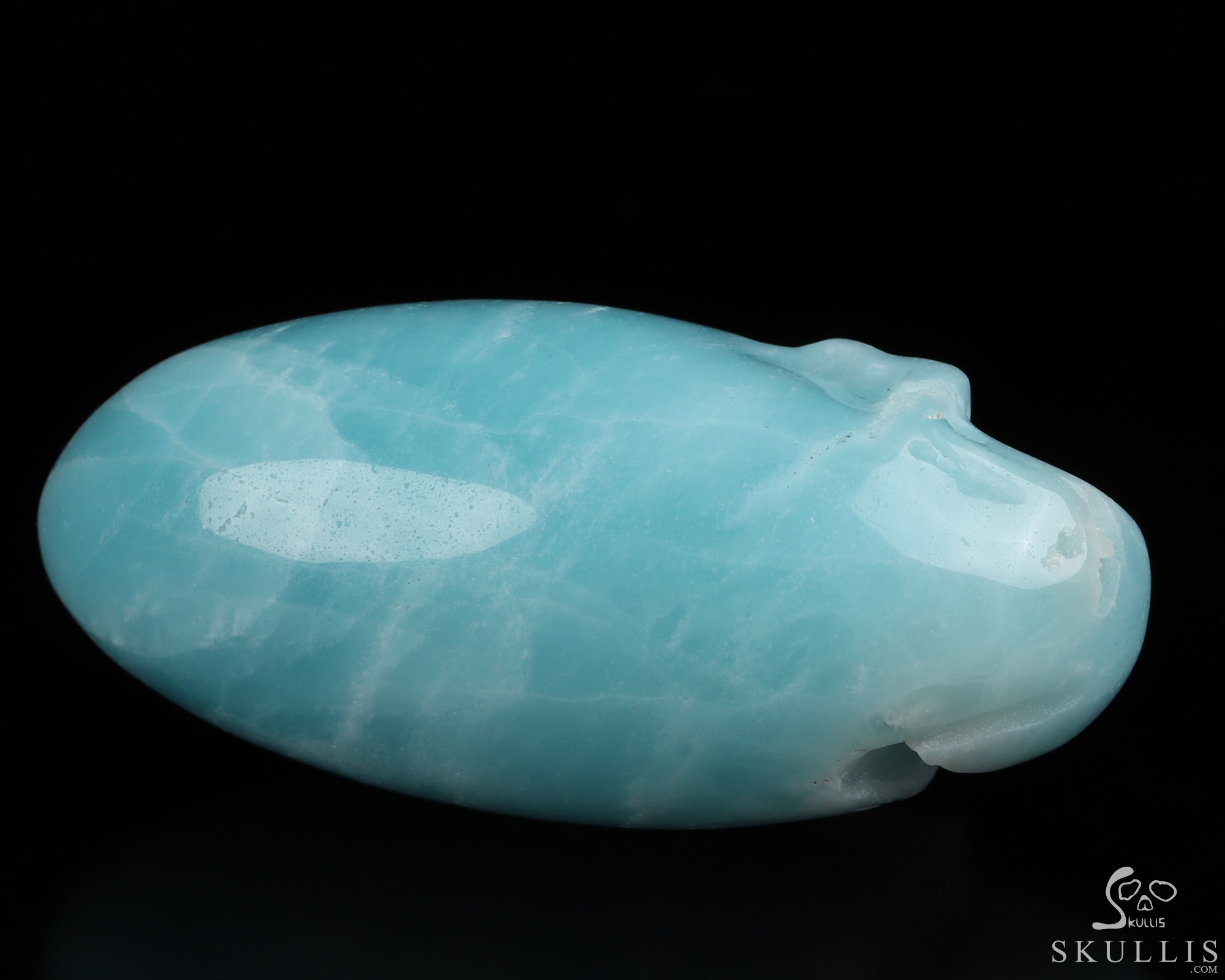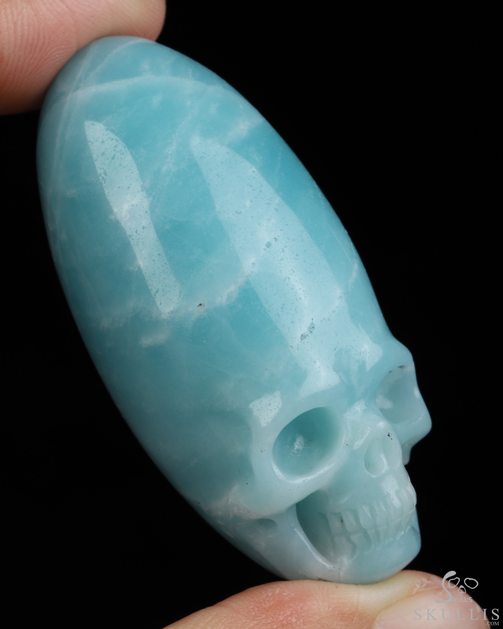You are looking at a Chinese Amazonite skull. The skull is 2.2 inches from front to back.