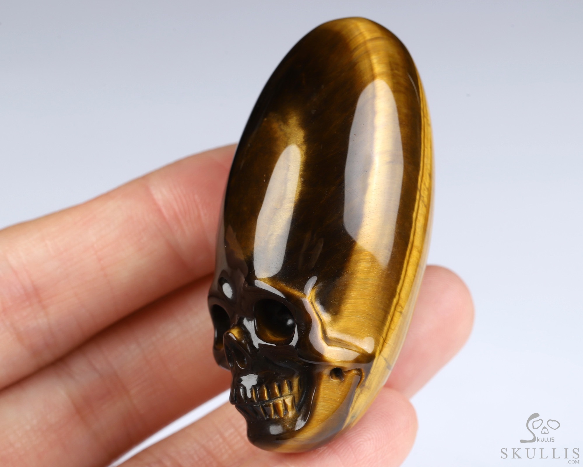 2.0" Gold Tiger's Eye Hand Carved Crystal Skull, Realistic, Crystal Healing