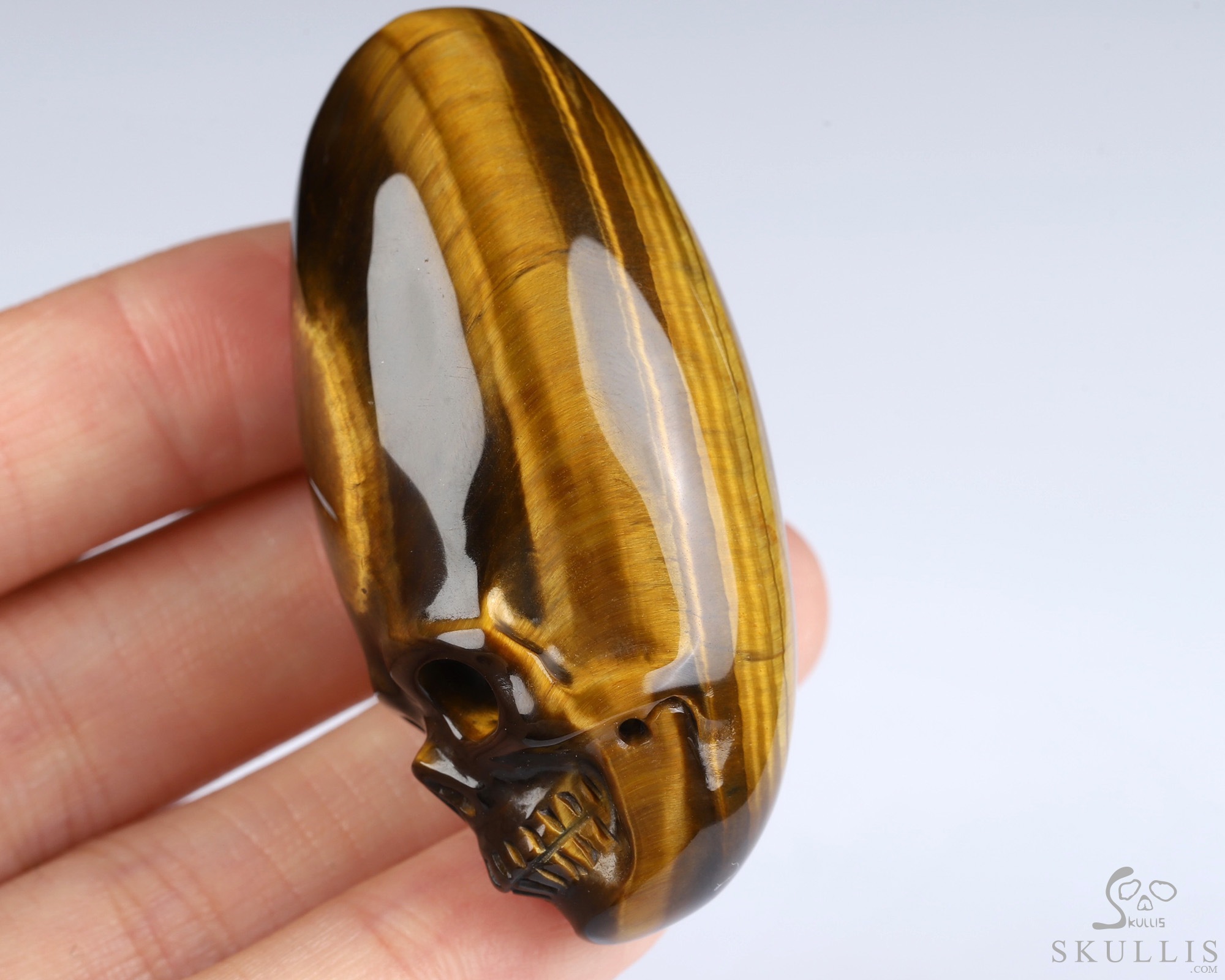 Huge 4.0" Gold Tiger's Eye Carved Crystal Skull,Super Realistic, Crystal Healing
