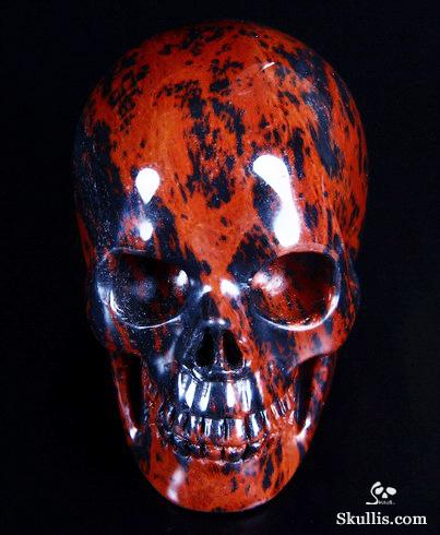 7.4" Mahogany Obsidian Carved Crystal Skull, Realistic, Crystal Healing