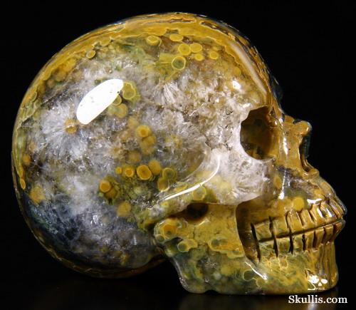 Lifesized 6.4" Ocean Jasper Carved Crystal Skull, Super Realistic