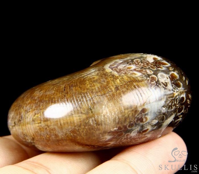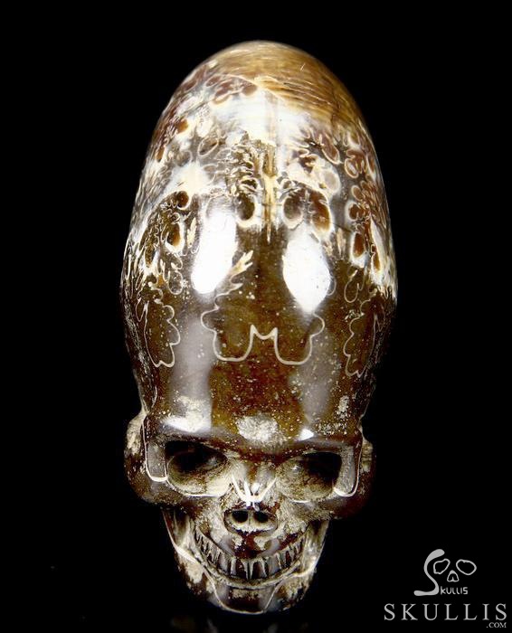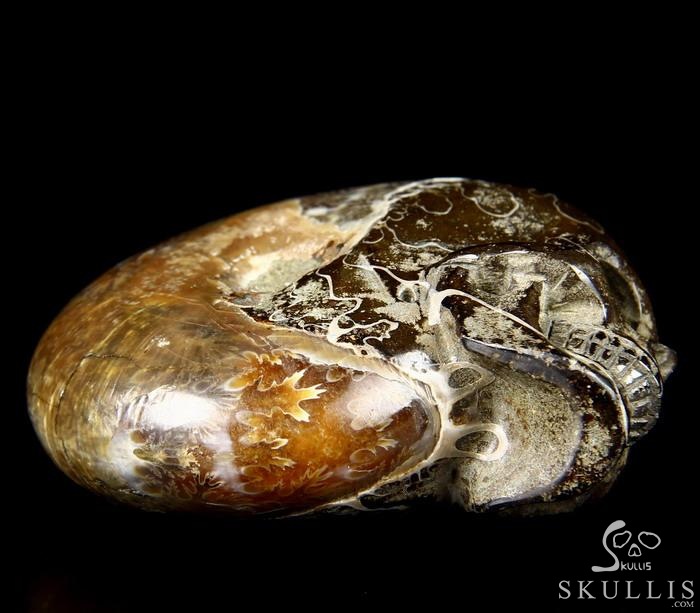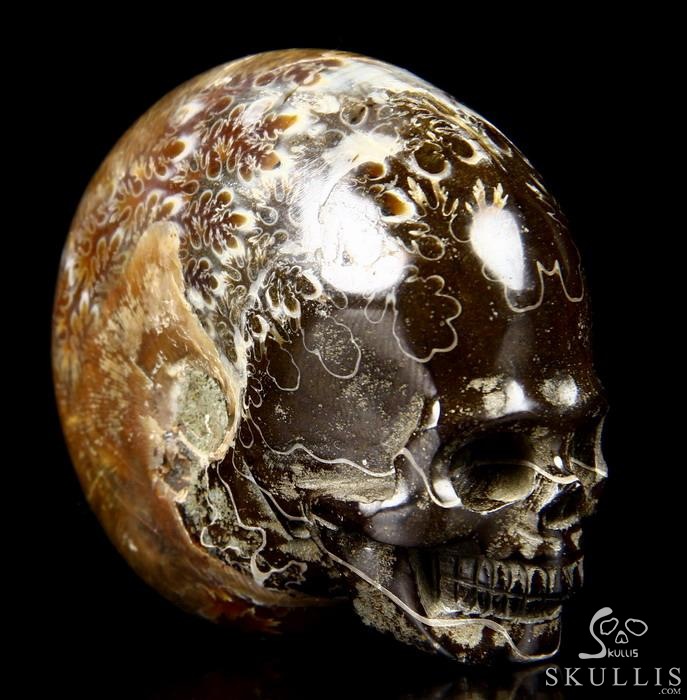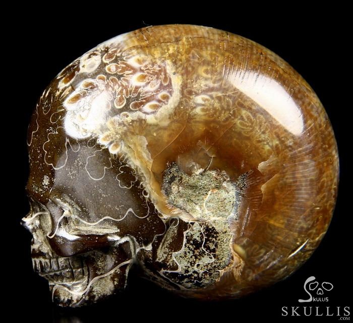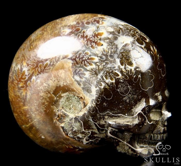 Huge 4.3" Ammonite Fossil Carved Crystal Skull