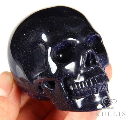 Gemstone 1.0" Aquamarine Hand Carved Crystal Skull, Realistic, Crystal Healing