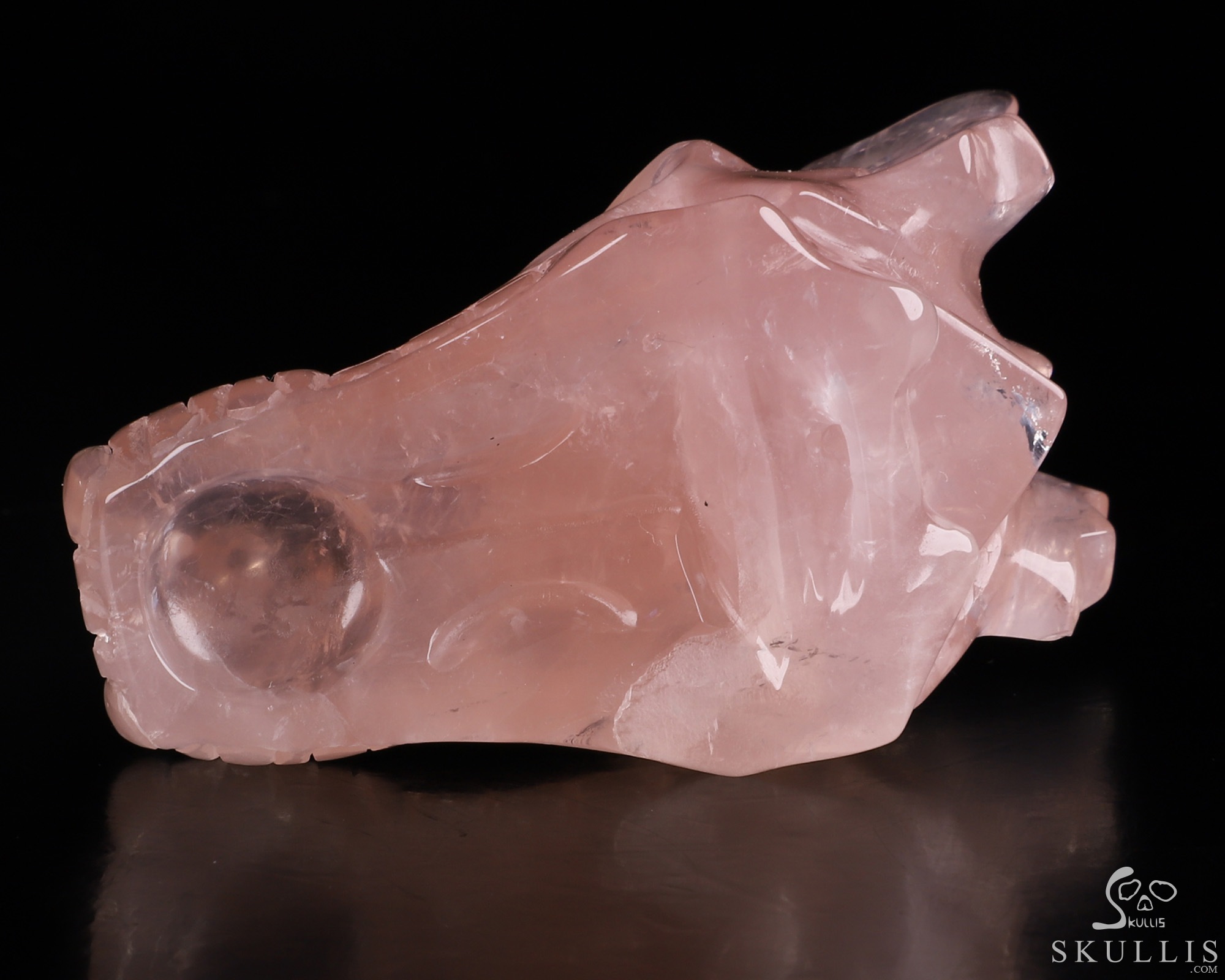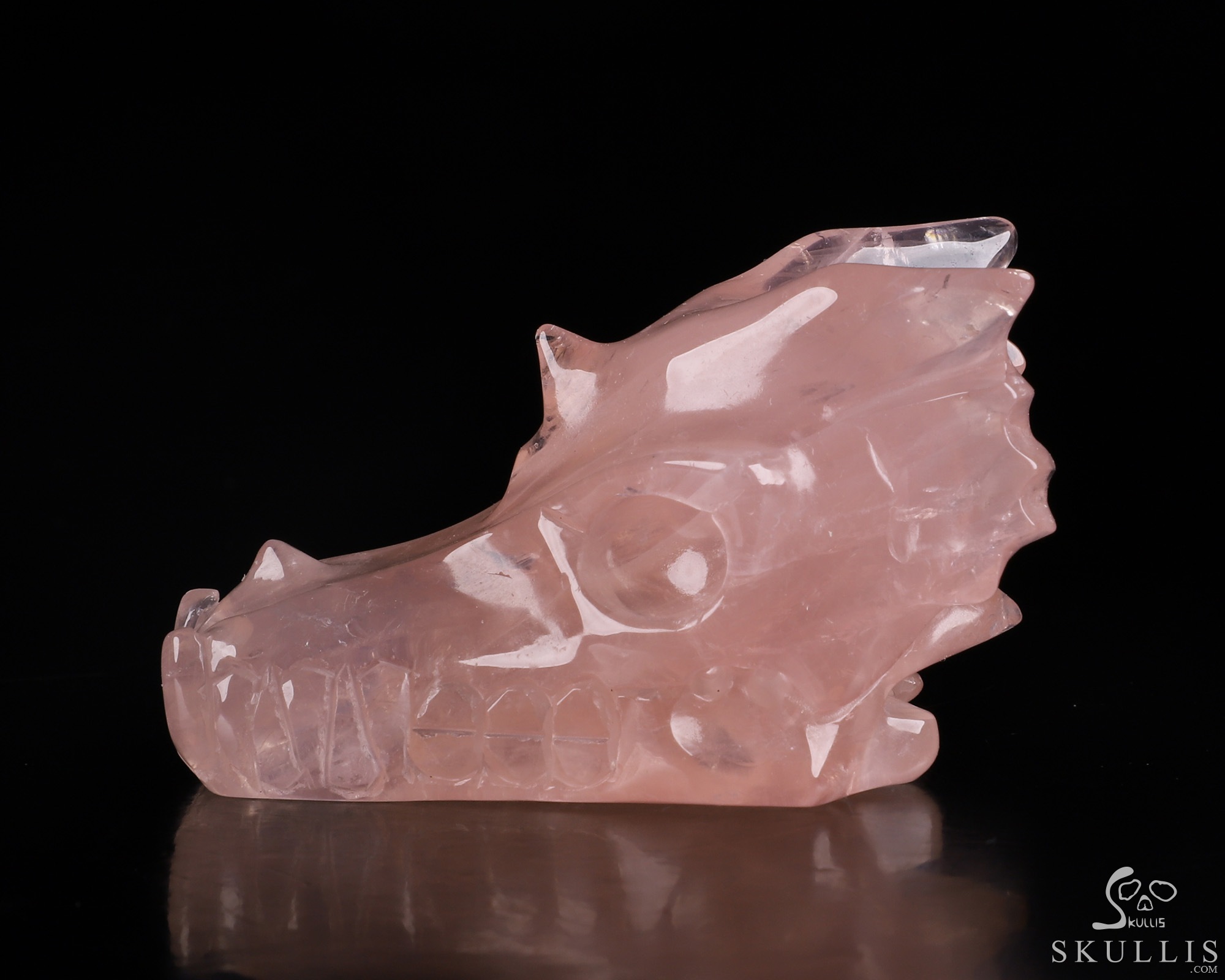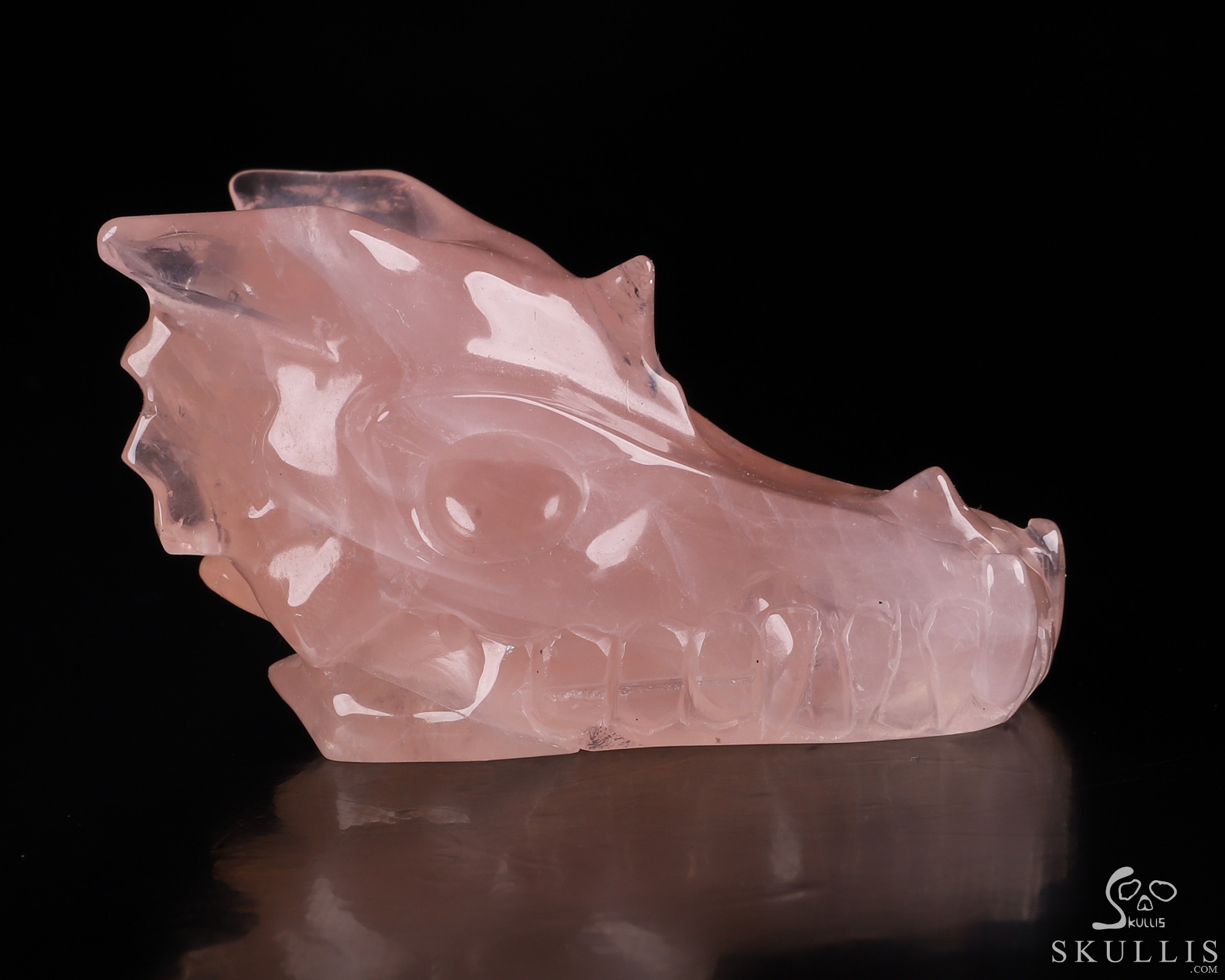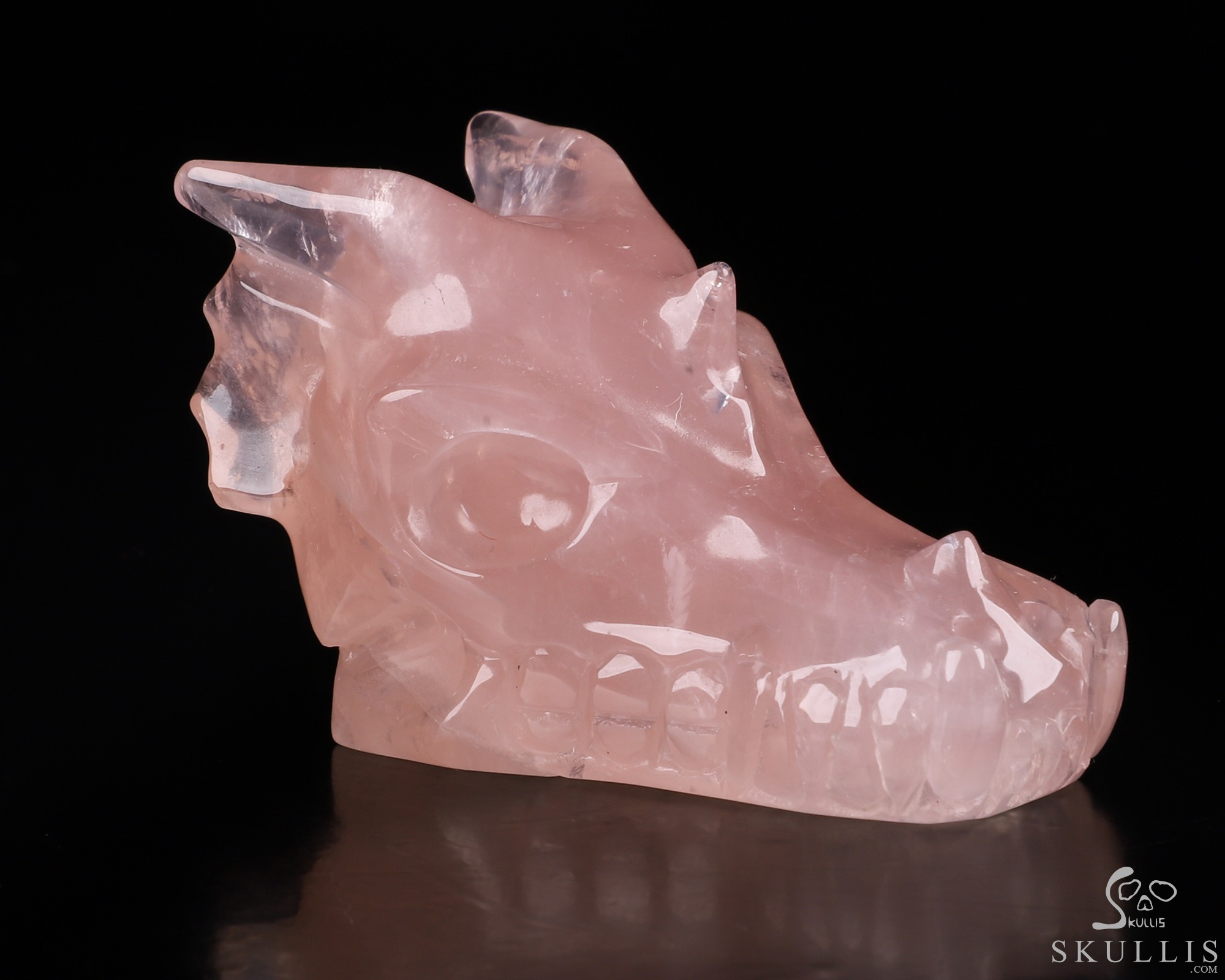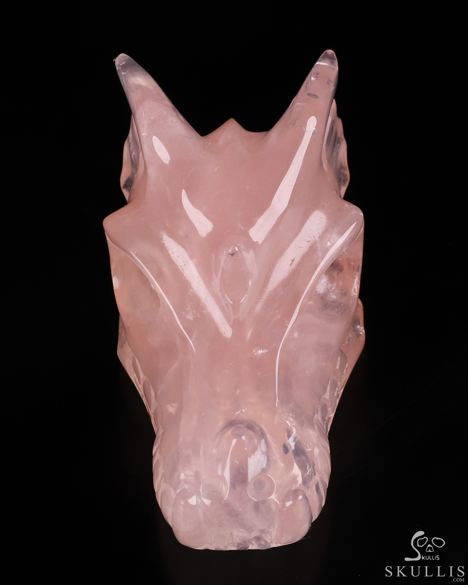 5.0" Rose Quartz Hand Carved Crystal Dragon Head Skull Sculpture, Crystal Healing