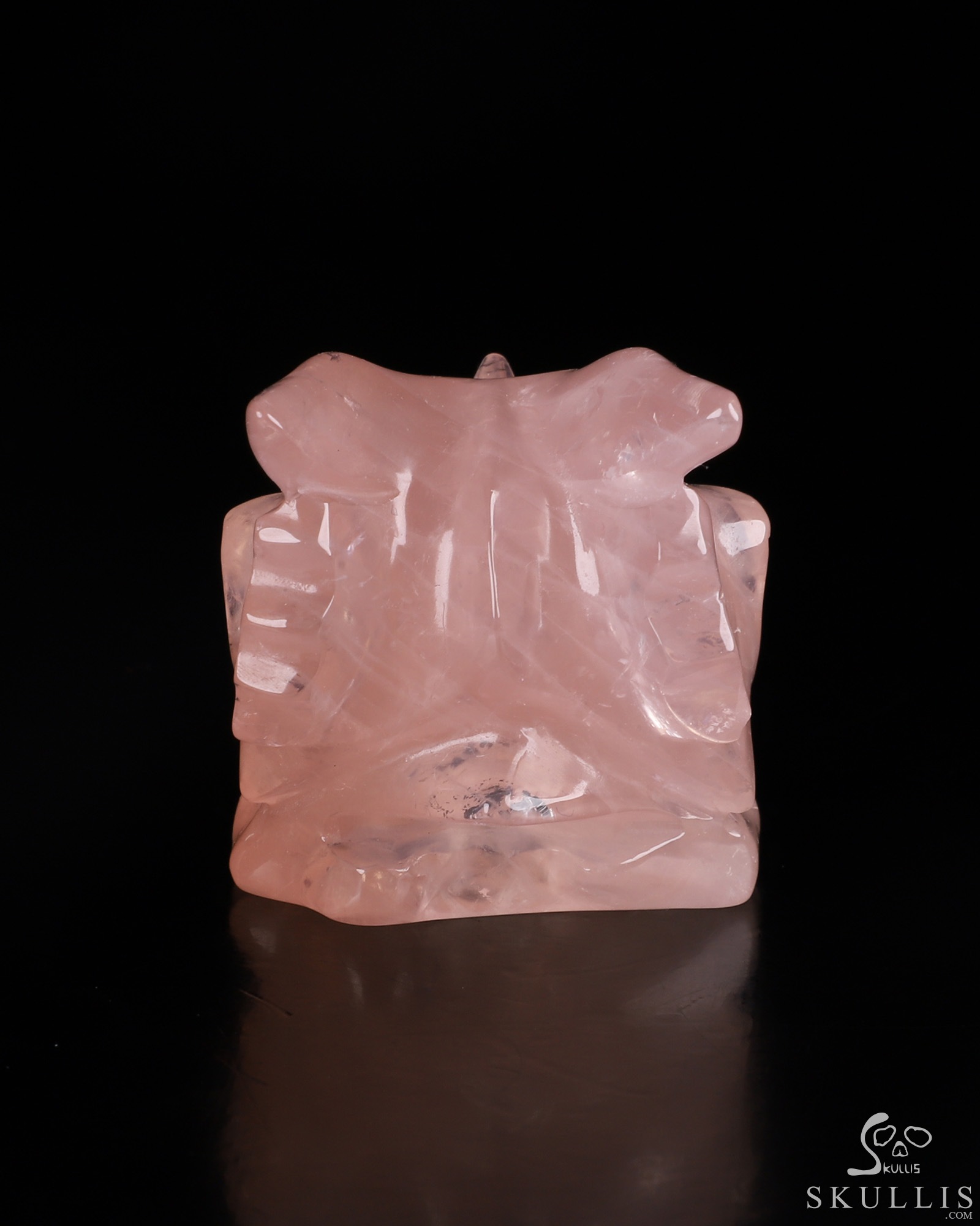 2.0" Rose Quartz Hand Carved Crystal Dragon Skull Sculpture, Crystal Healing