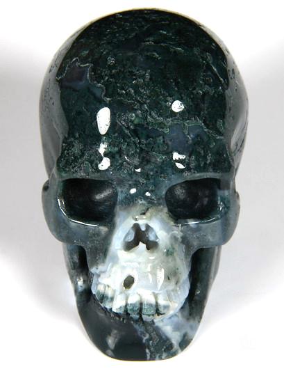 5.0" Green Moss Agate Hand Carved Crystal Skull, Realistic, Crystal Healing