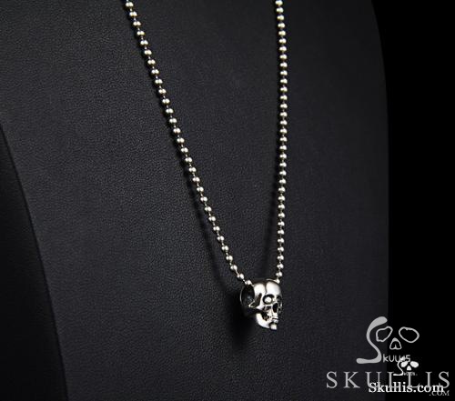 23" 925 Sterling Silver Skull Pendant with 925 Silver Chain, Cubic Zirconia Eyes
