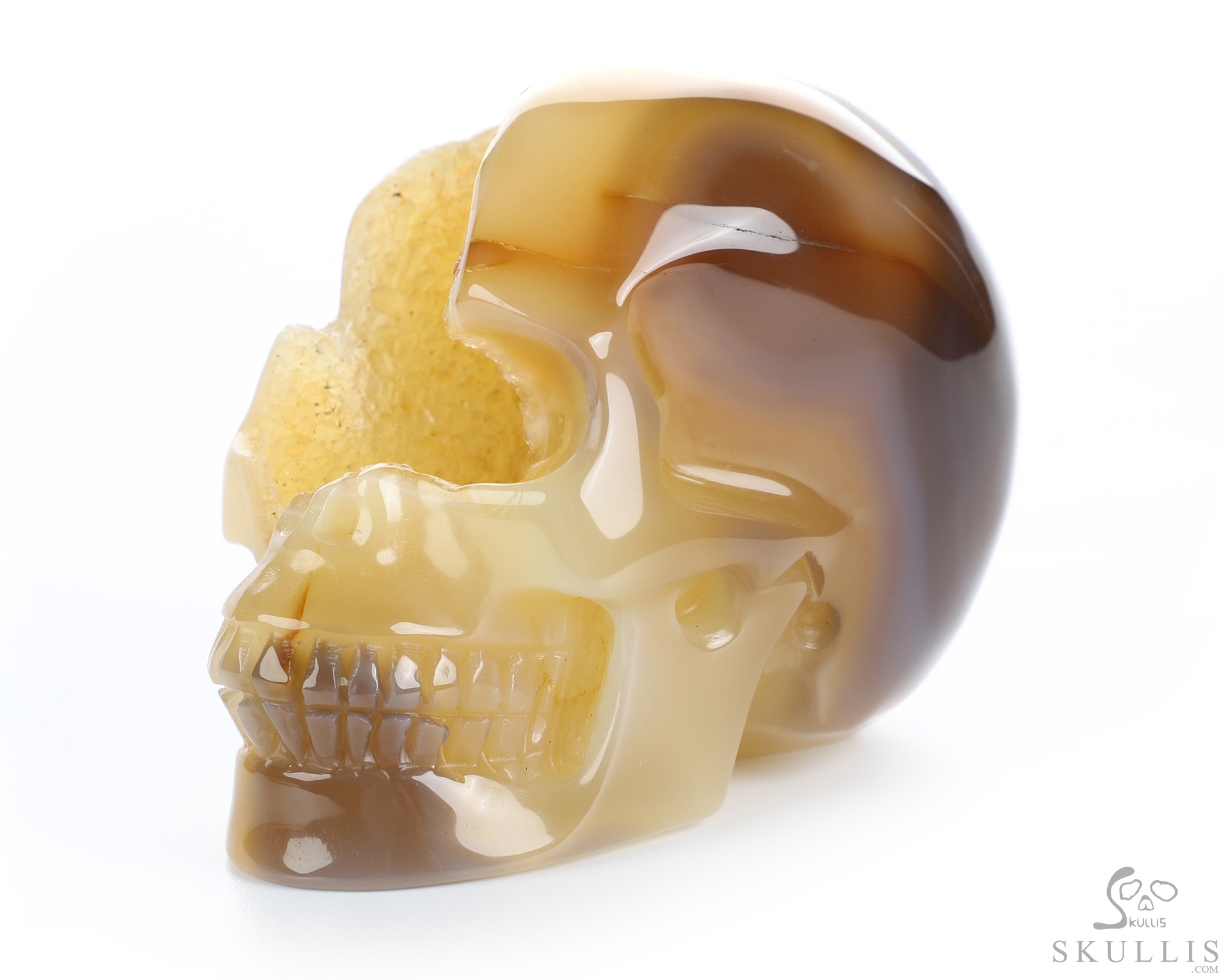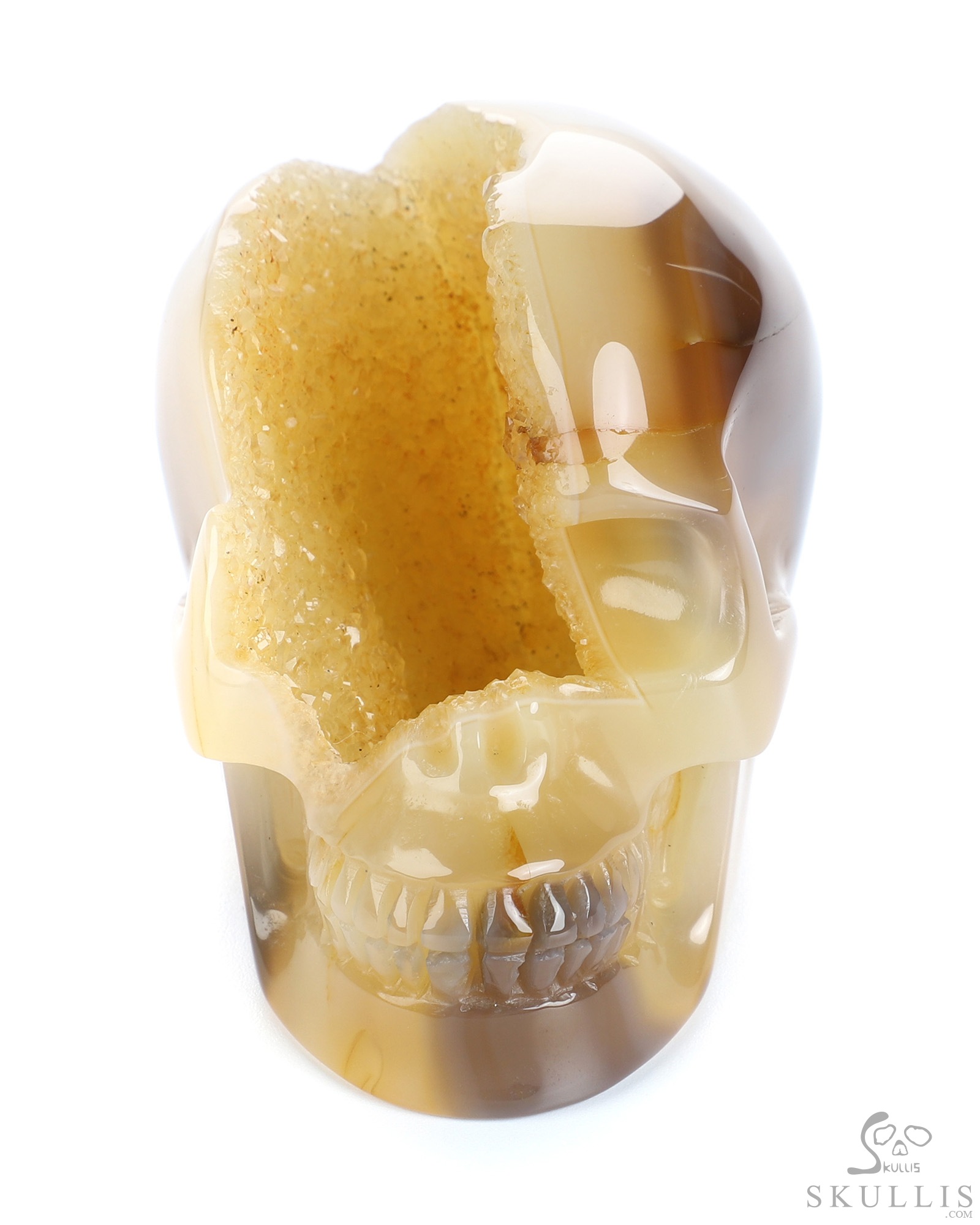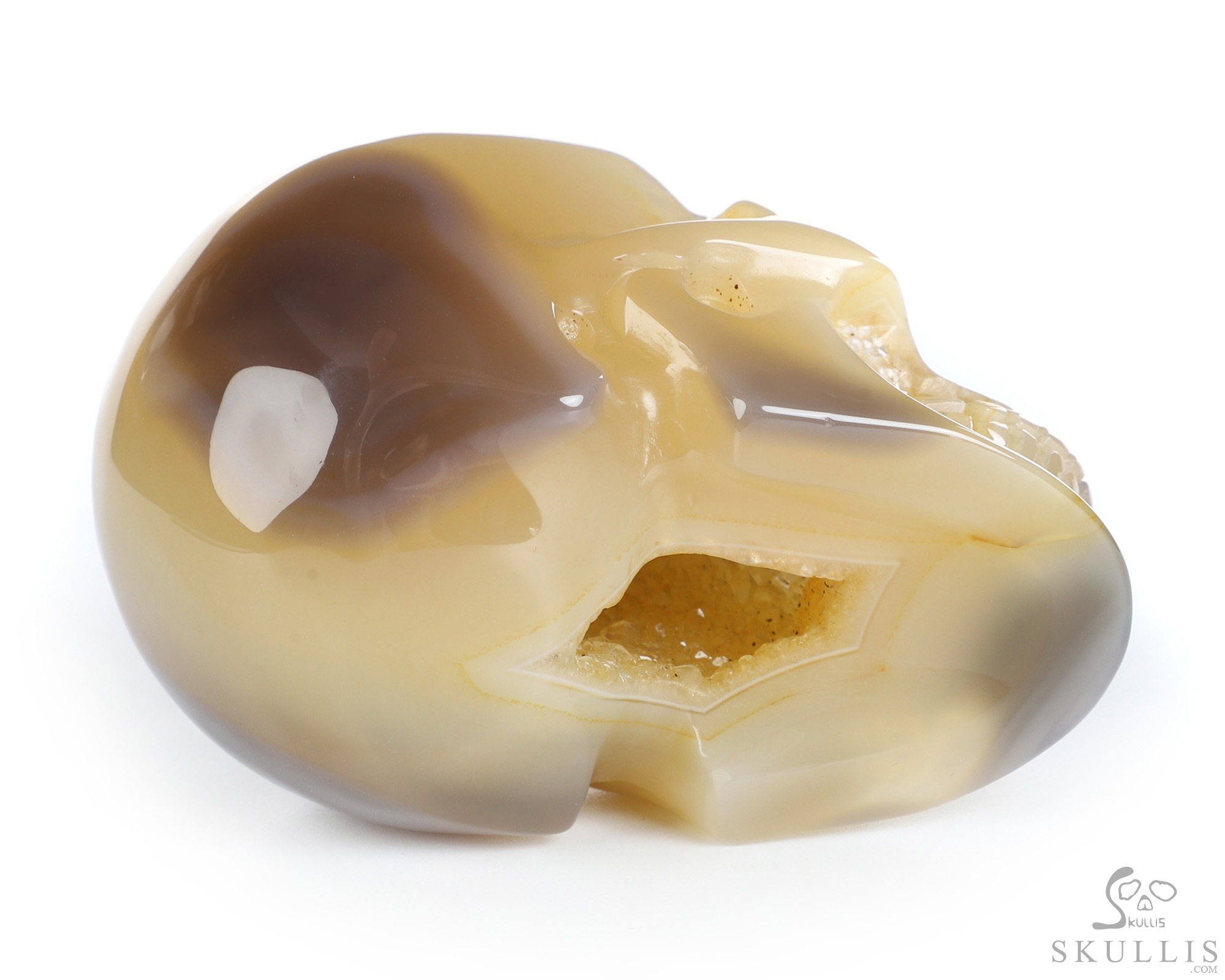 Huge 4.4" Agate Geode Carved Crystal Skull