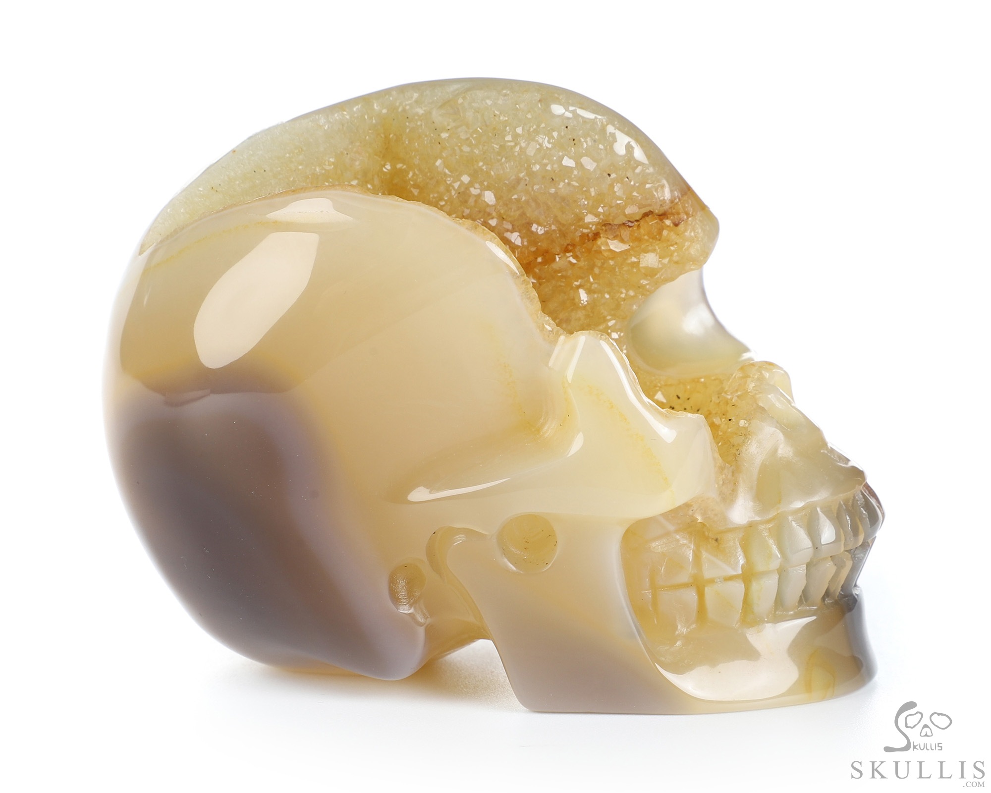 1.9" Agate Geode Hand Carved Crystal Skull, Realistic, Crystal Healing