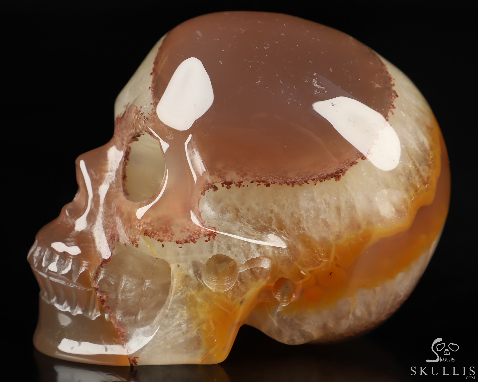 Huge 3.9" Agate Carved Crystal Skull, Realistic, Crystal Healing