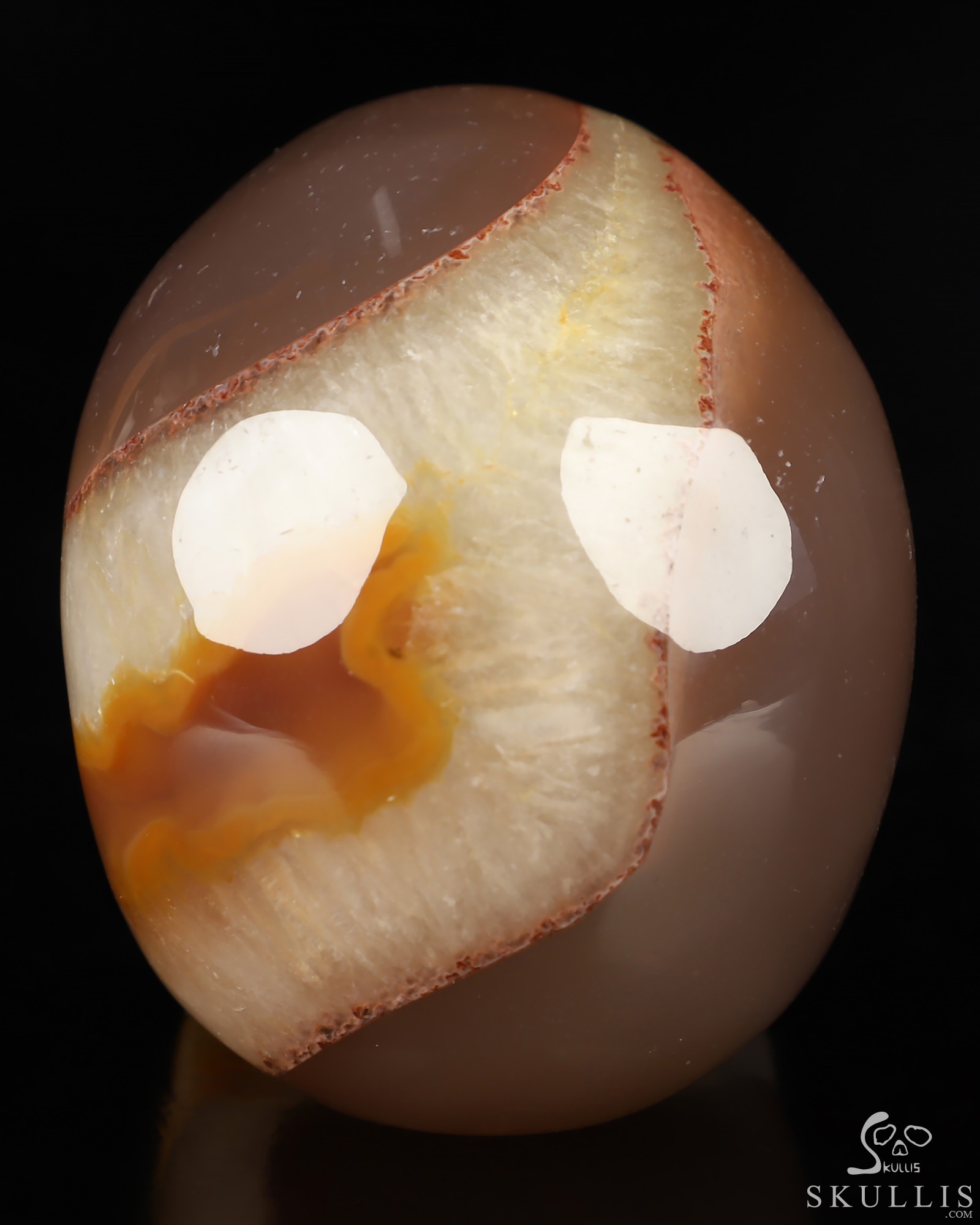 You are looking at a Agate skull. The skull is 3 inches from front to back.