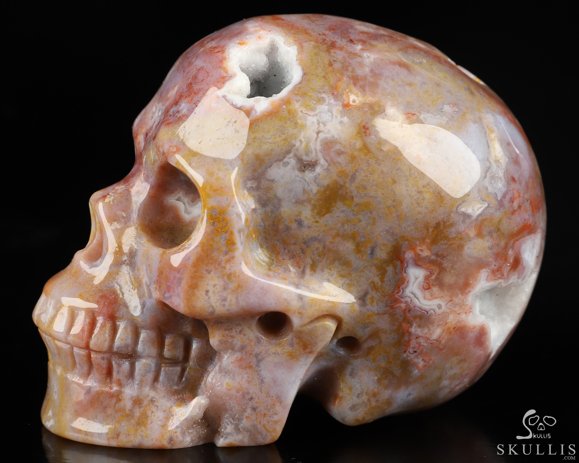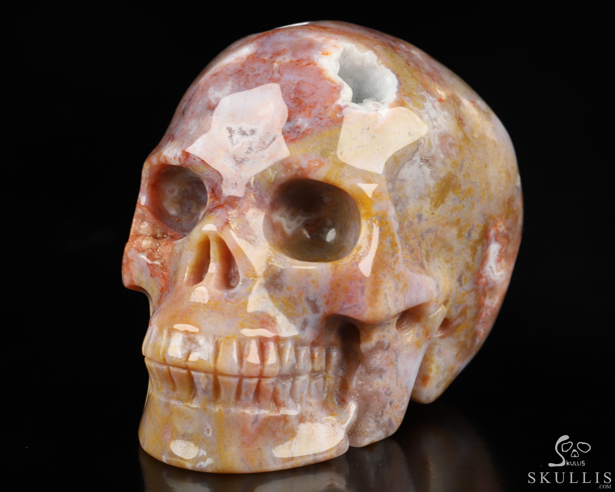 3.0" Indian Agate Geode Hand Carved Crystal Skull, Realistic, Crystal Healing
