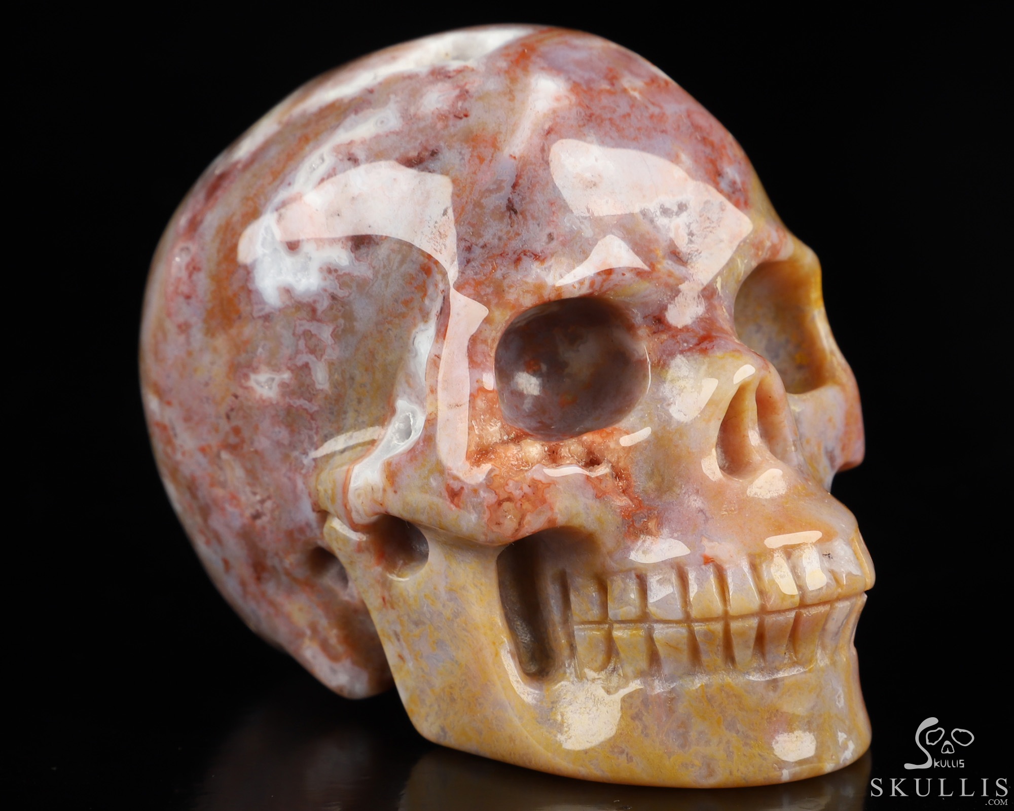 Super Realistic! Lifesized 6.1" Indian Agate Hand Carved Crystal Skull, Crystal Healing