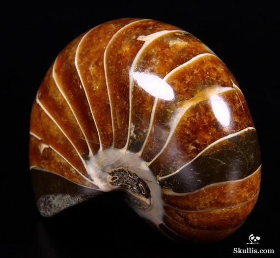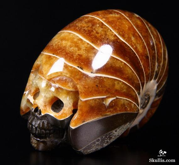 Huge 4.3" Ammonite Fossil Carved Crystal Skull