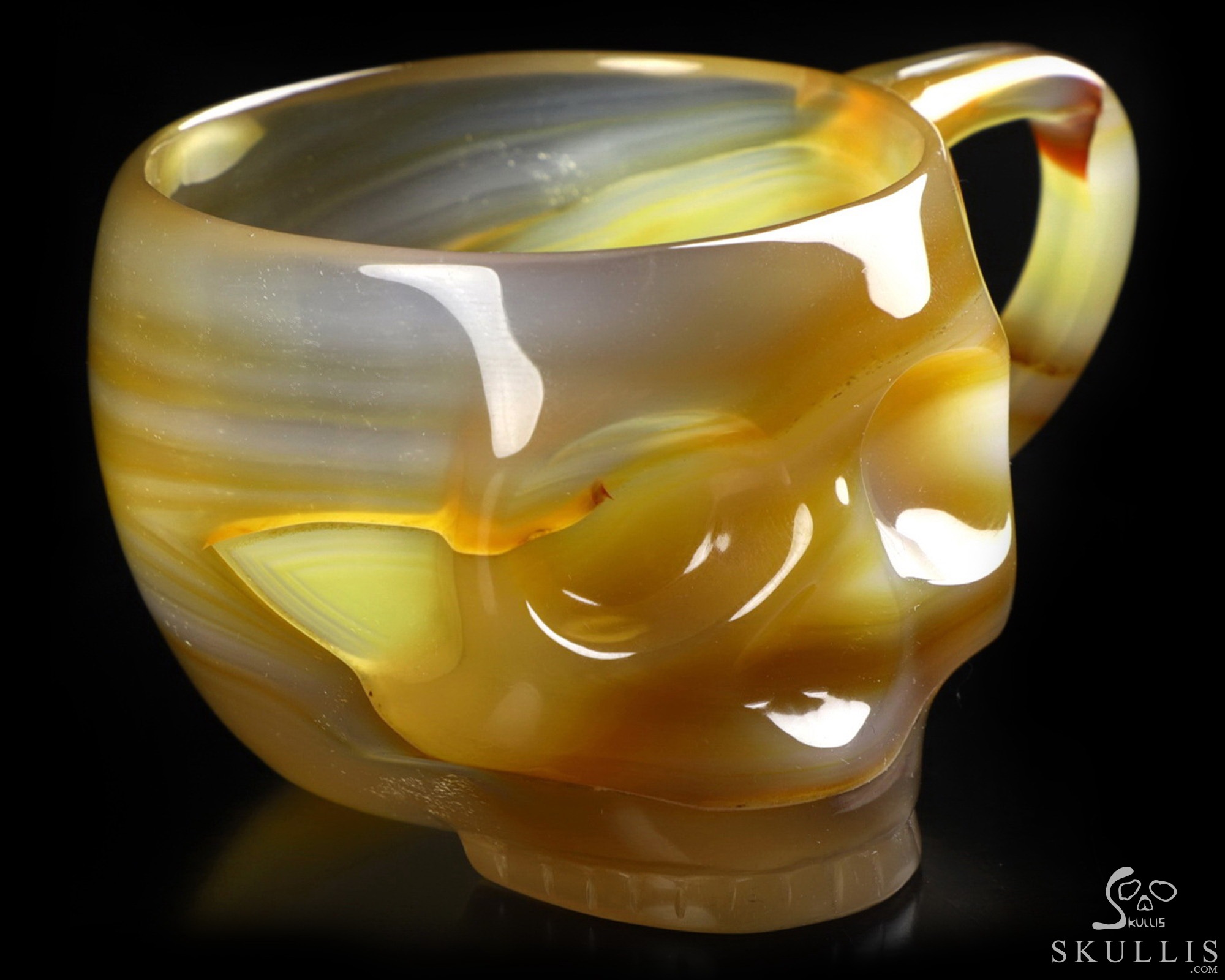 3.1" Premium Brazilian Agate Hand Carved Crystal Skull Cup Fine Art Sculpture, Crystal Healing