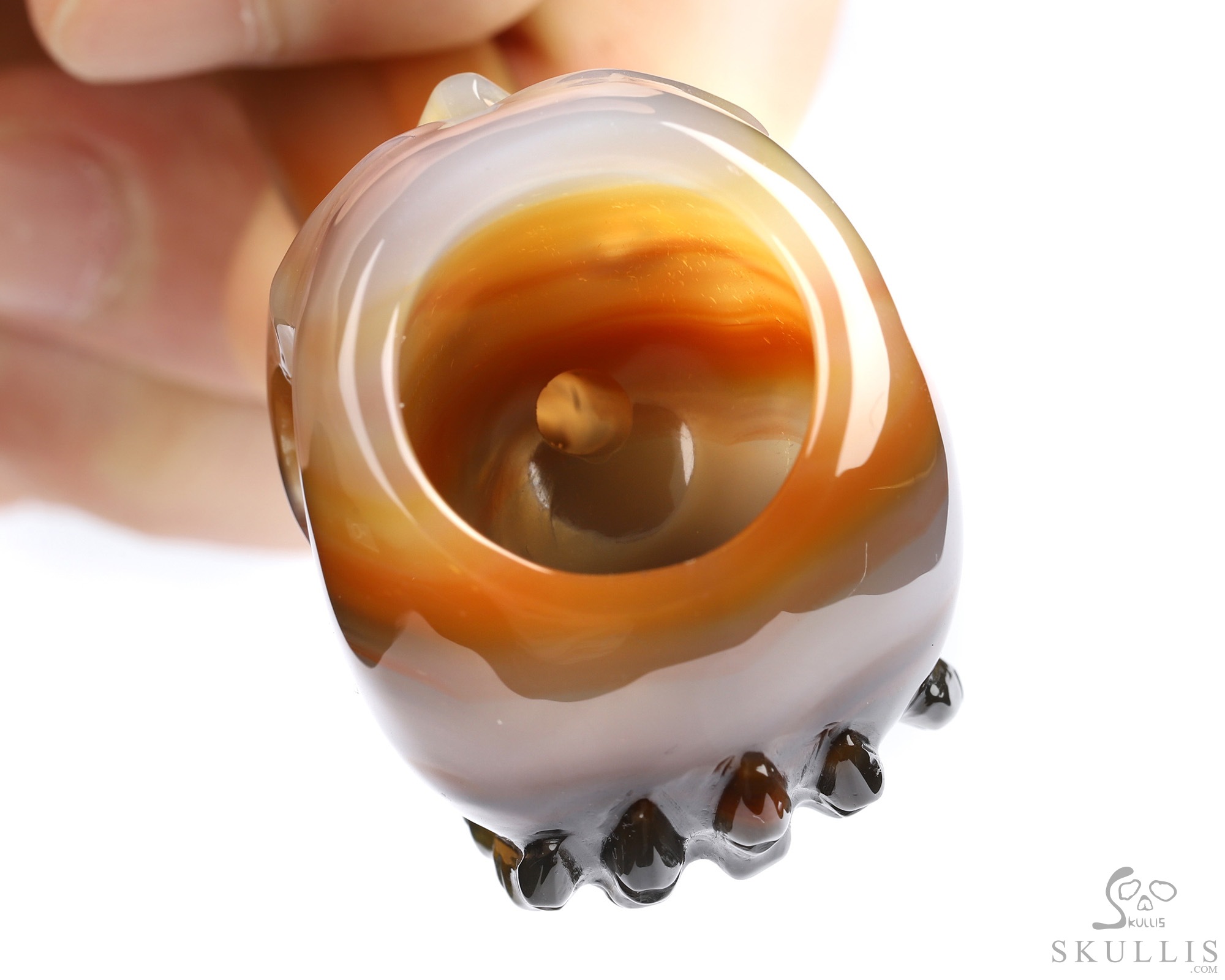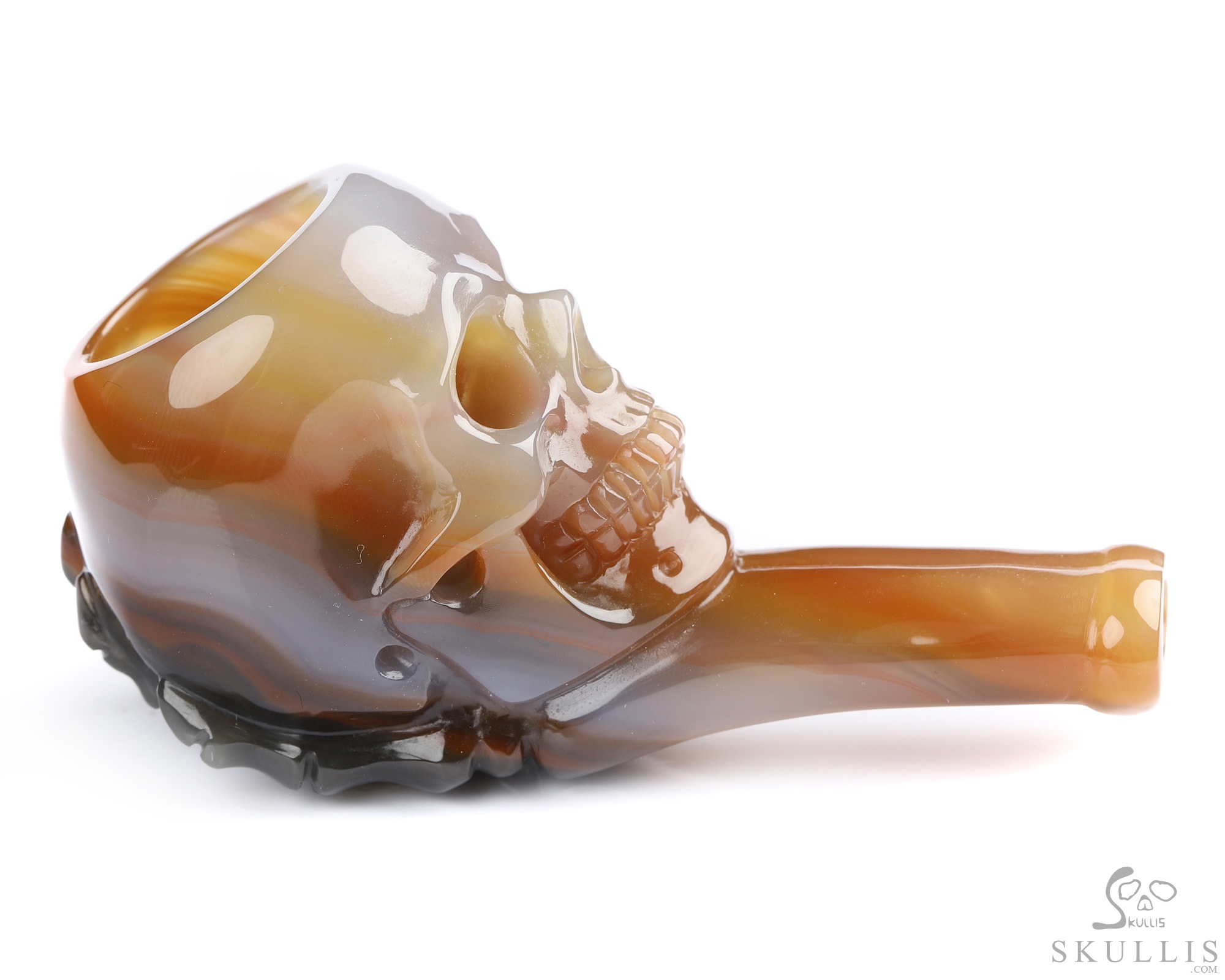 3.1" Premium Brazilian Agate Hand Carved Crystal Skull Pipe, Crystal Healing