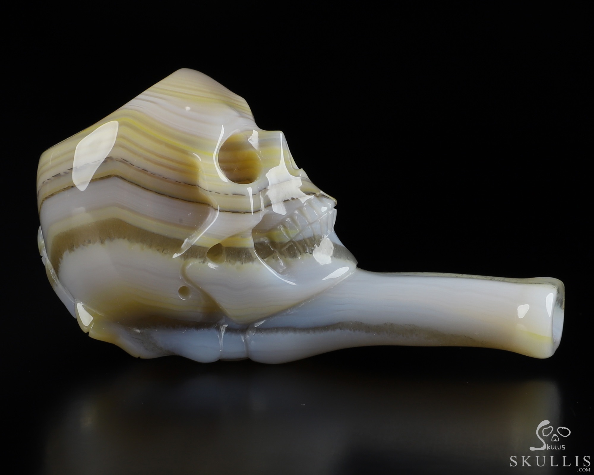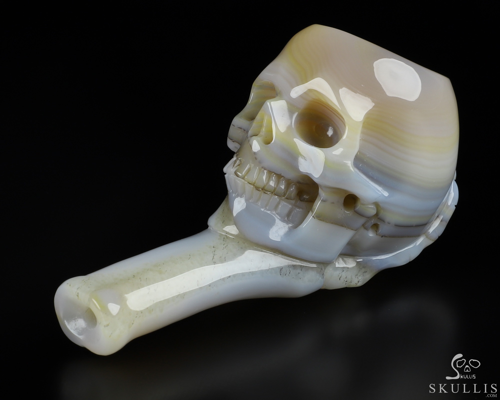 3.1" Premium Brazilian Agate Hand Carved Crystal Skull Pipe, Crystal Healing
