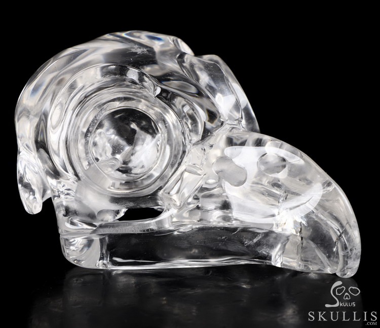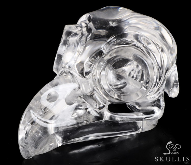 Original Giant 8.4" Quartz Rock Crystal Carved Crystal Skull With Owl Sculpture Ponit, Realistic, Crystal Healing