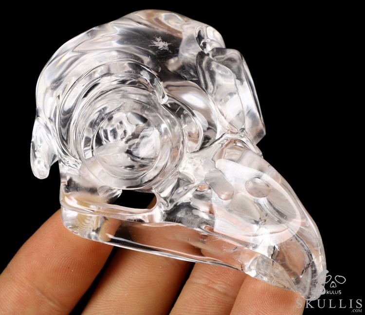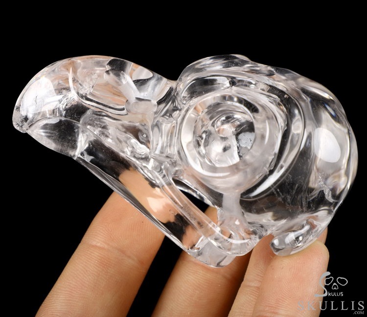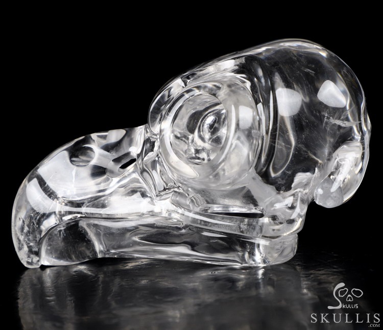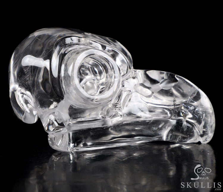 3.1" Quartz Rock Crystal Carved Crystal Owl Skull, Realistic