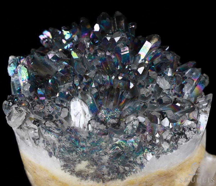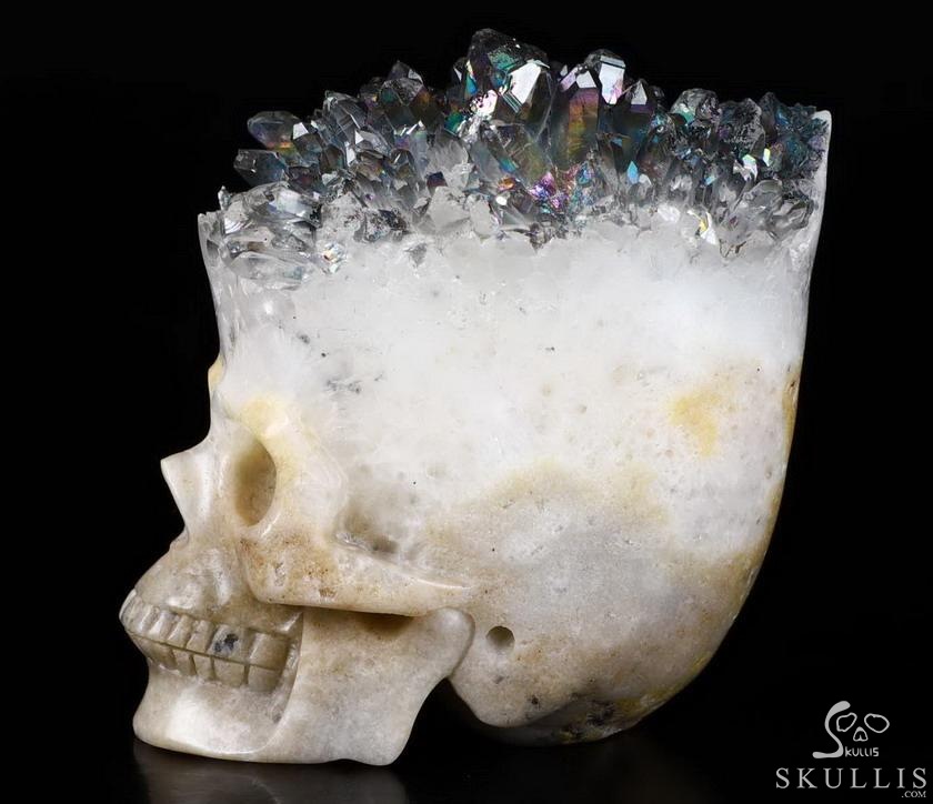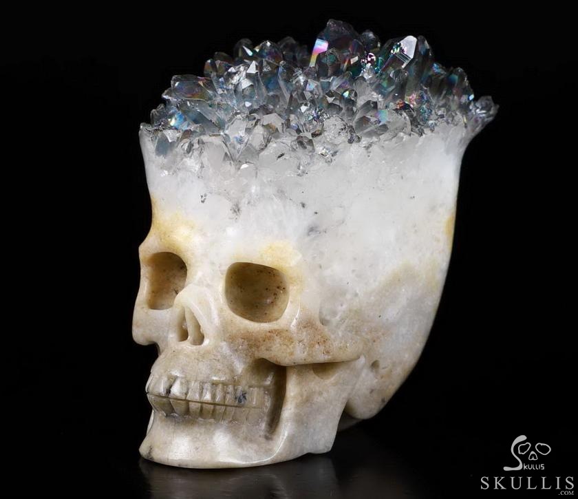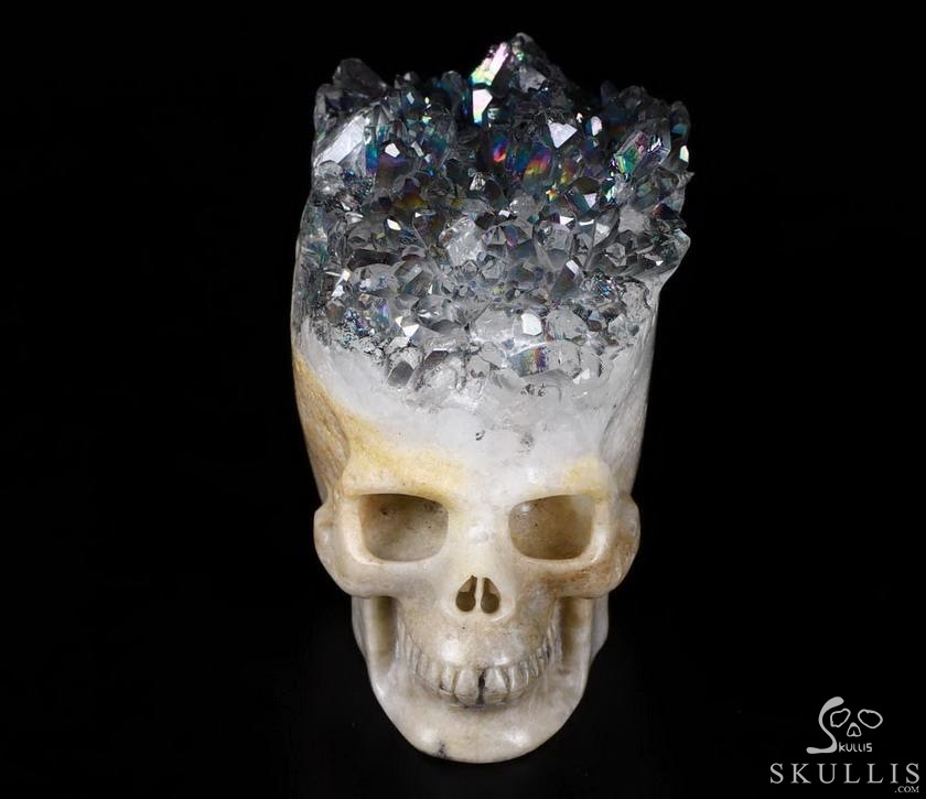 Rainbow Clear Huge 5.7" Quartz Rock Crystal Carved Crystal Skull, Super Realistic