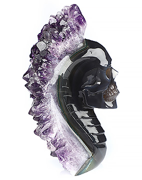 9.8" Agate Amethyst Druse Hand Carved Crystal Skull and Wing Sculpture, Crystal Healing