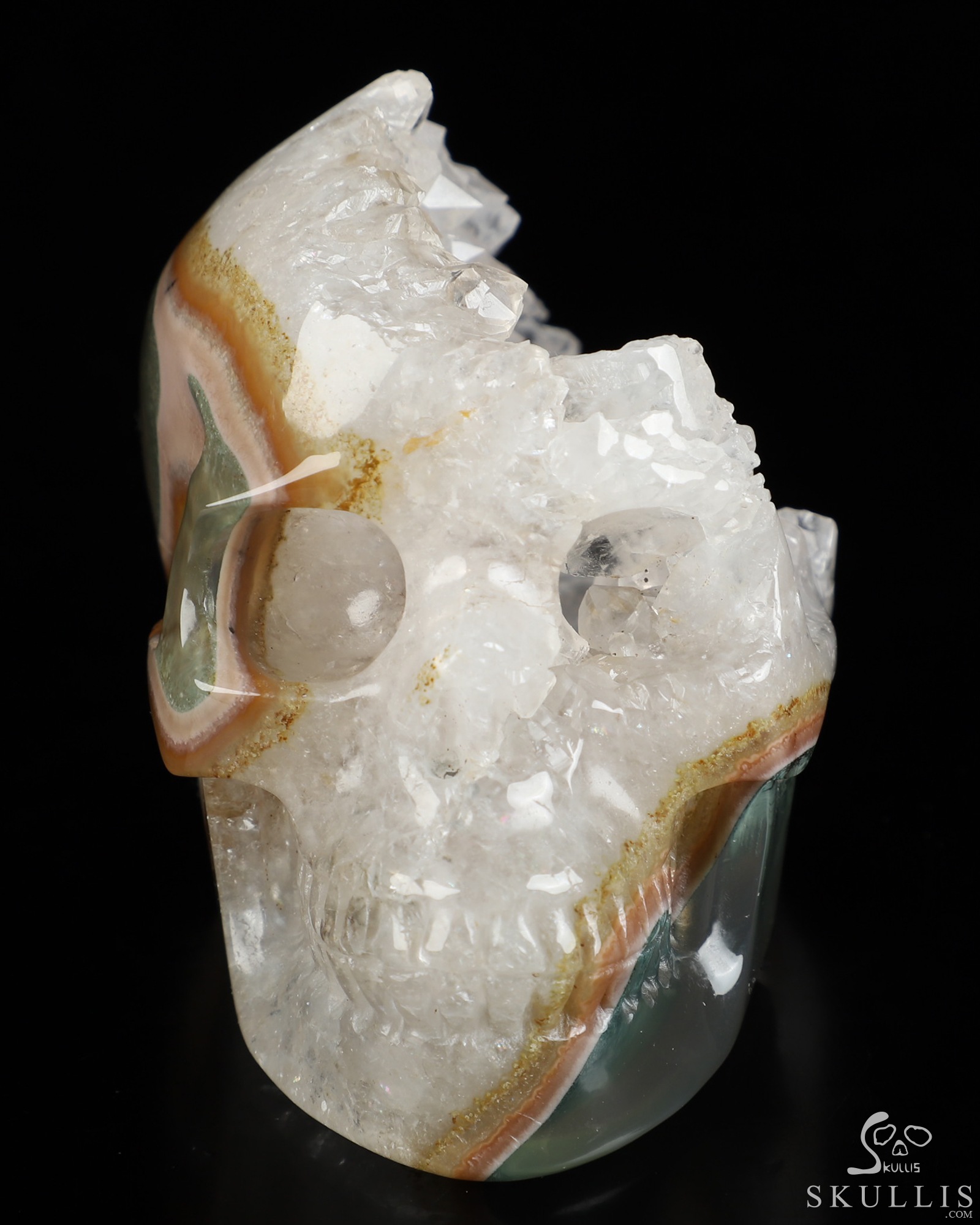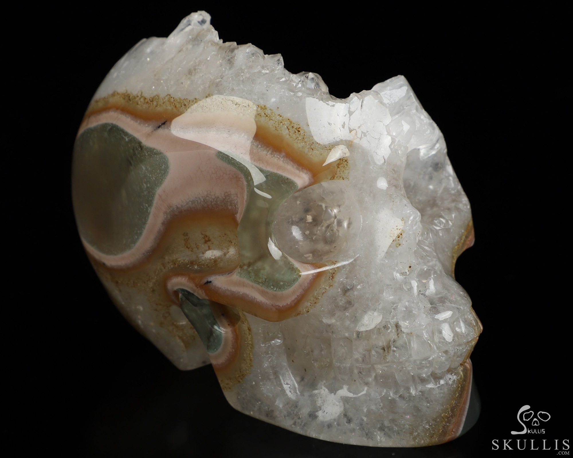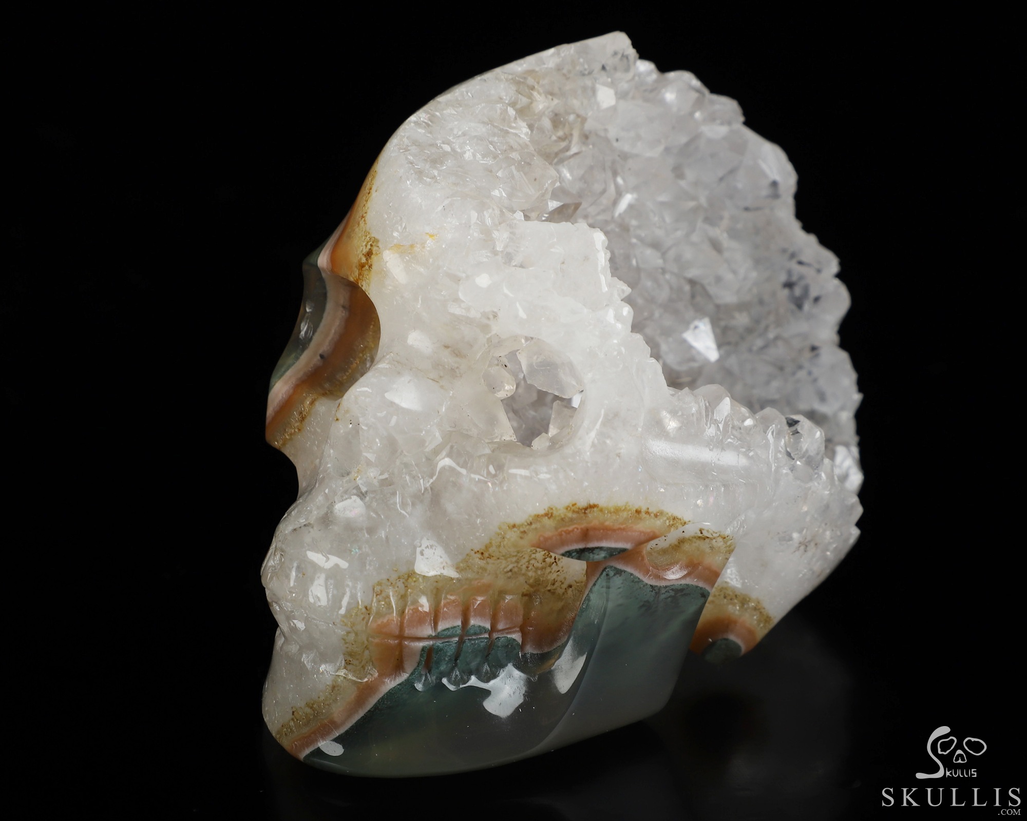 Lifesized 6.9" Agate Geode Hand Carved Crystal Skull with Stand, Crystal Healing