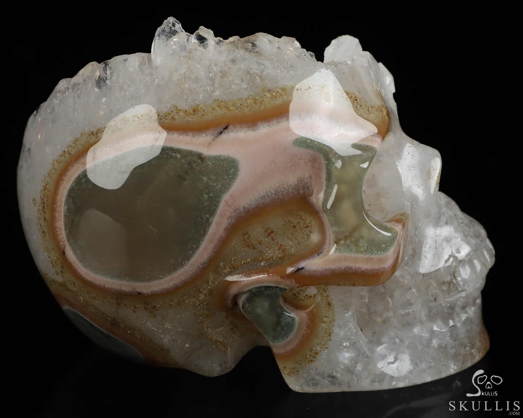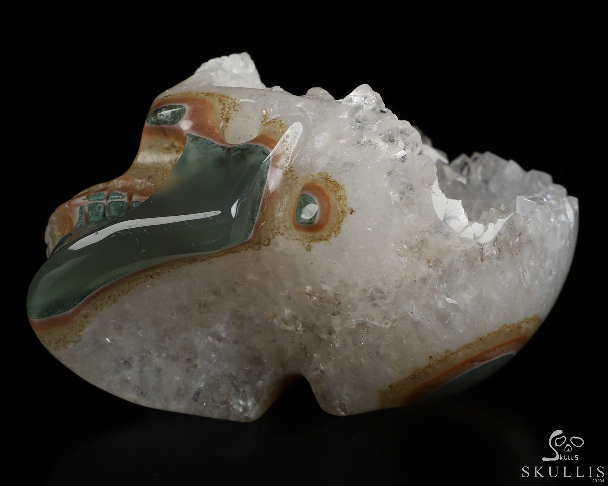 You are looking at a Agate Geode skull. The skull is 3.5 inches from front to back.
