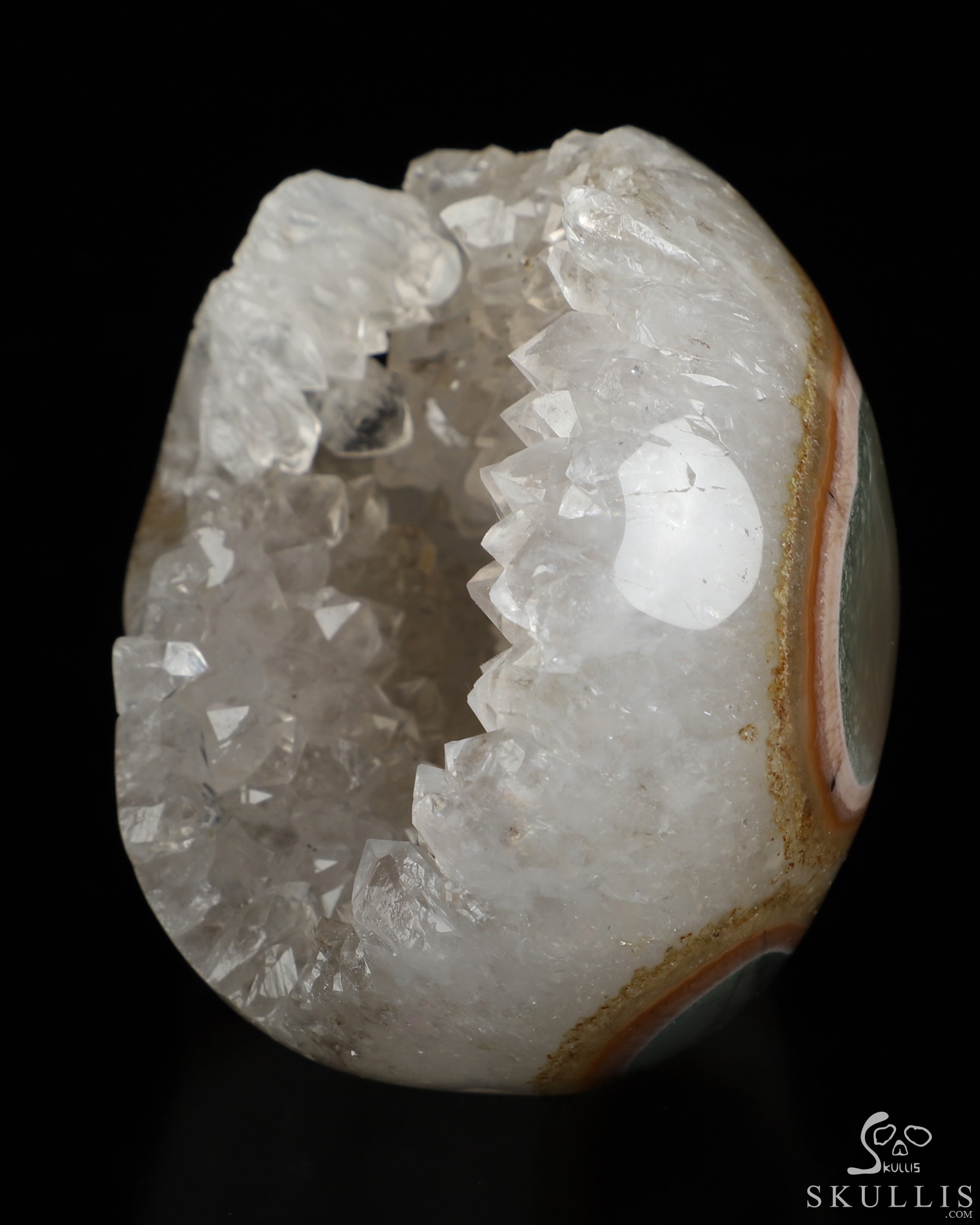 Geode Lifesized 6.5" Agate Geode Carved Crystal Skull,Super Realistic, Crystal Healing