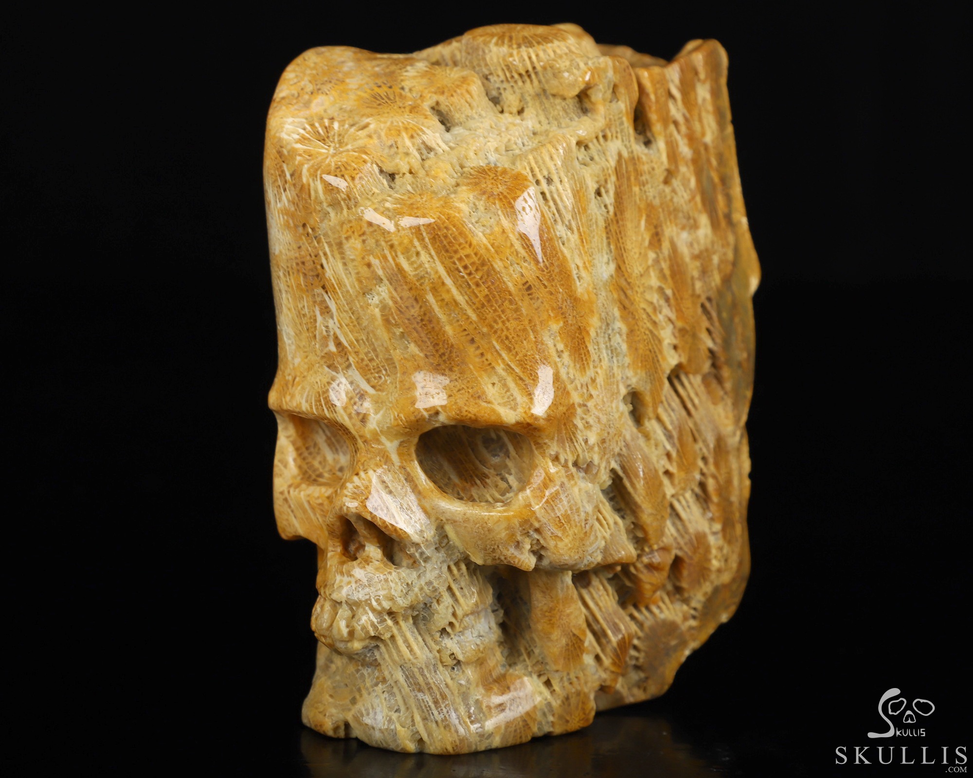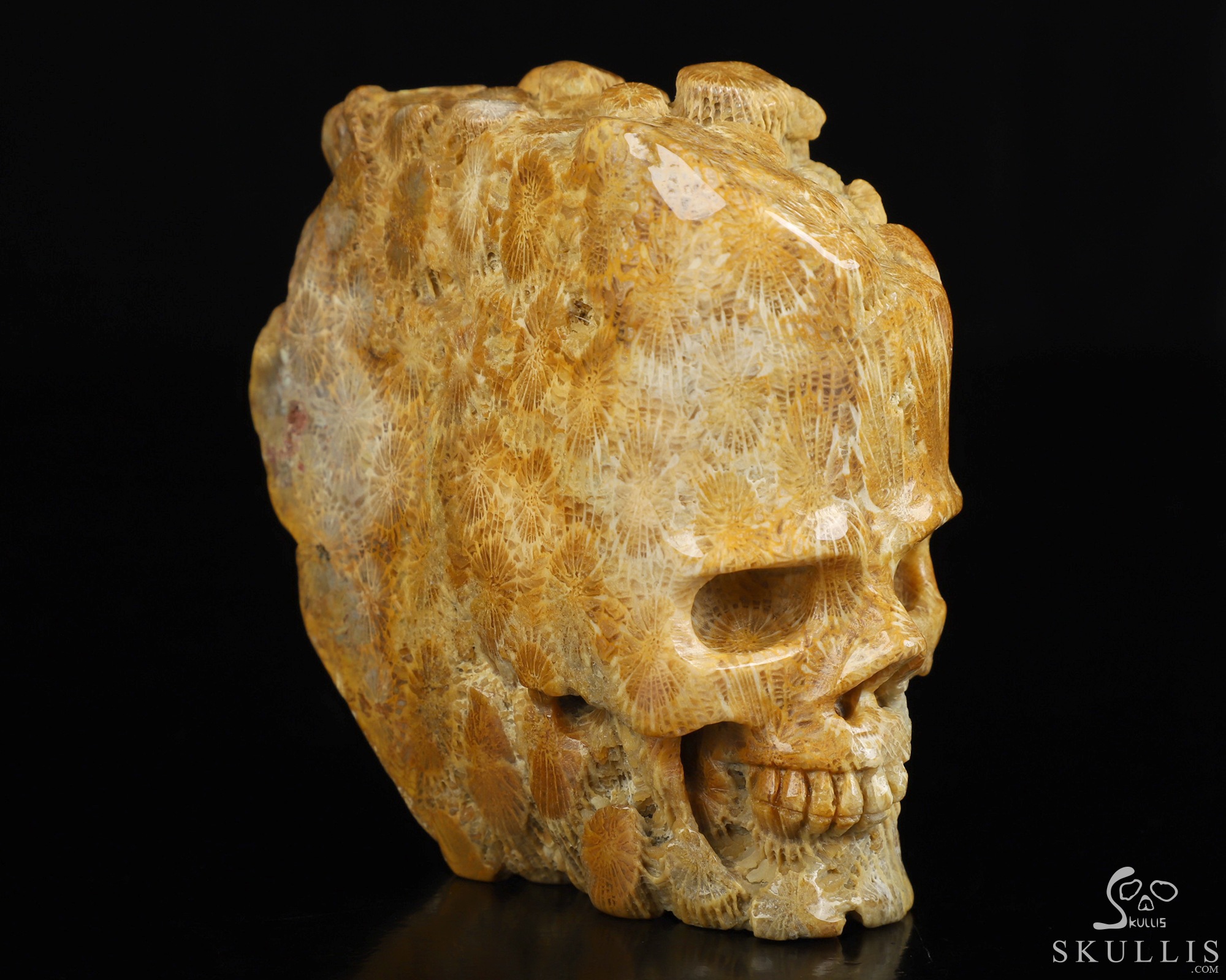 5.1" Coral Fossil Hand Carved Crystal Skull, Super Realistic, Crystal Healing
