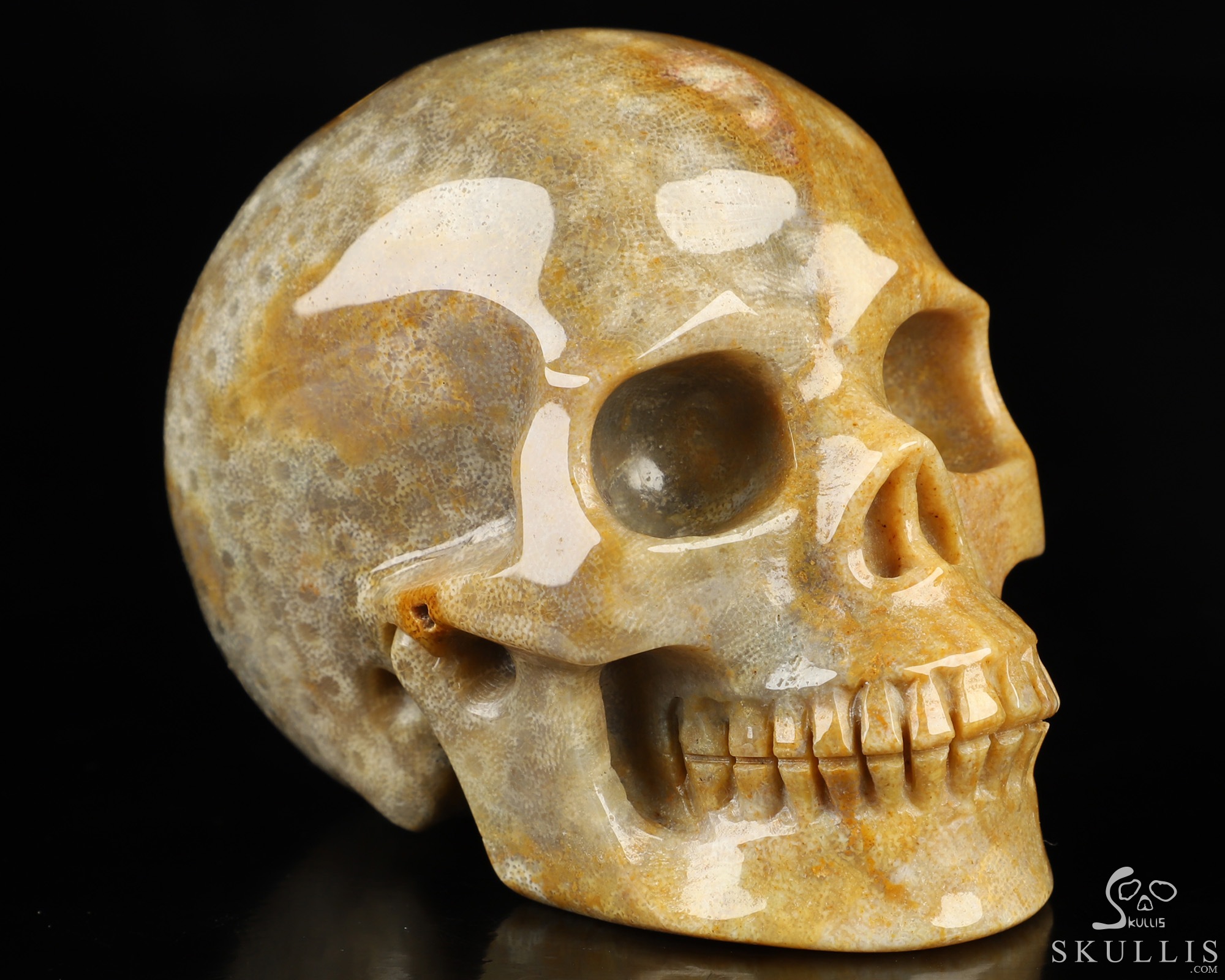 4.1" Coral Fossil Hand Carved Crystal Skull, Super Realistic, Crystal Healing