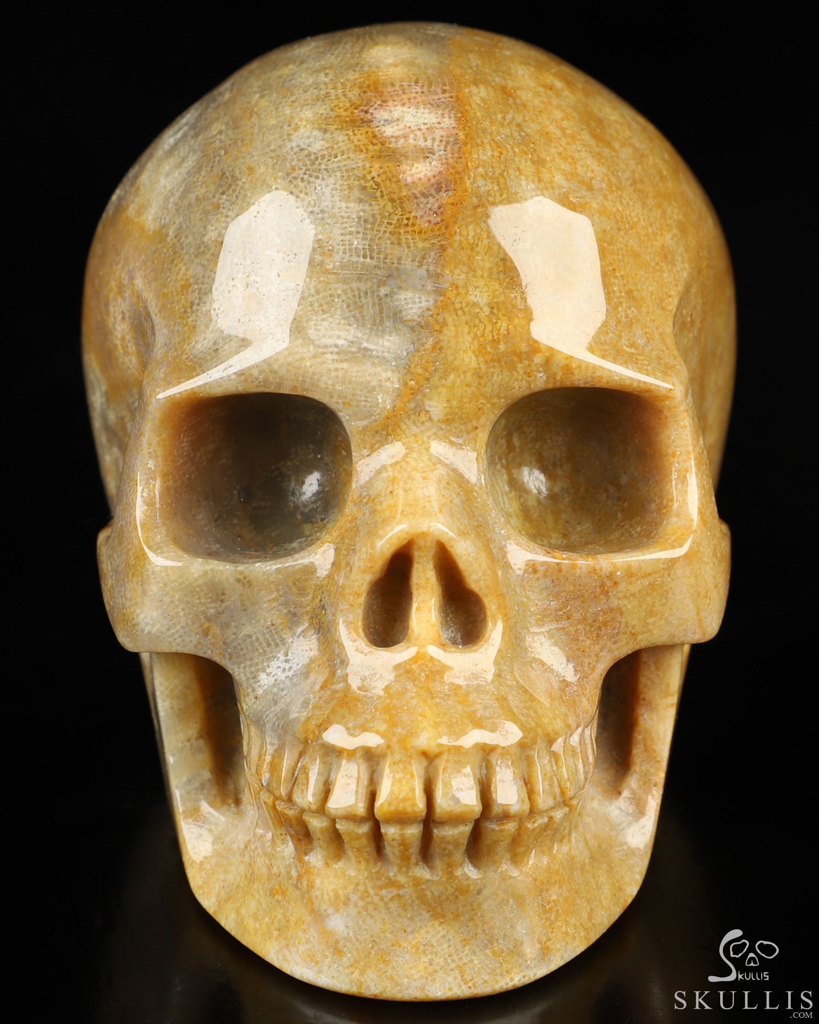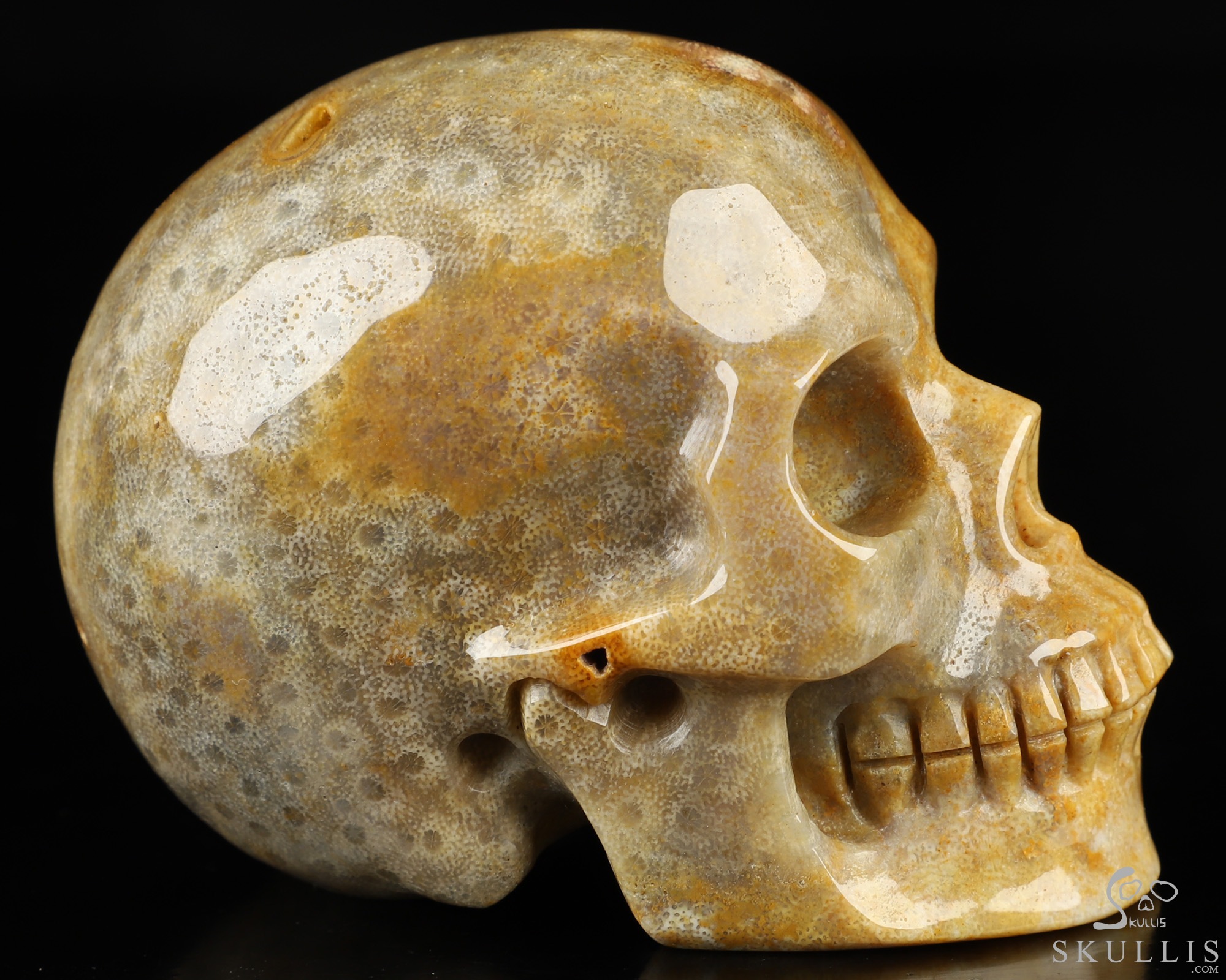 Lifesized 7.0" Coral Fossil Carved Crystal Skull,Super Realistic, Crystal Healing