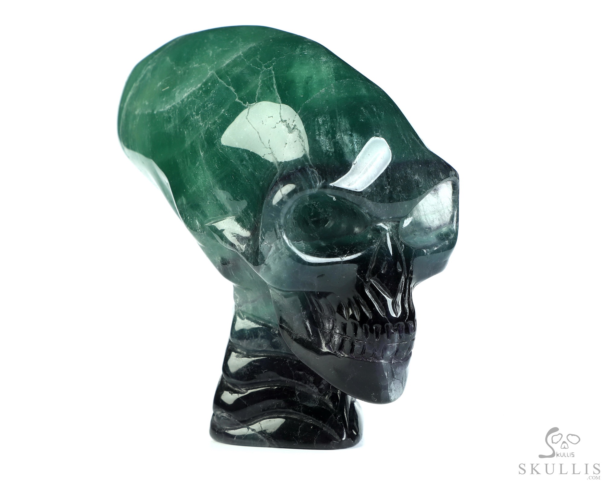 5.7" Fluorite Hand Carved Crystal Skull Fine Art Sculpture, Crystal Healing