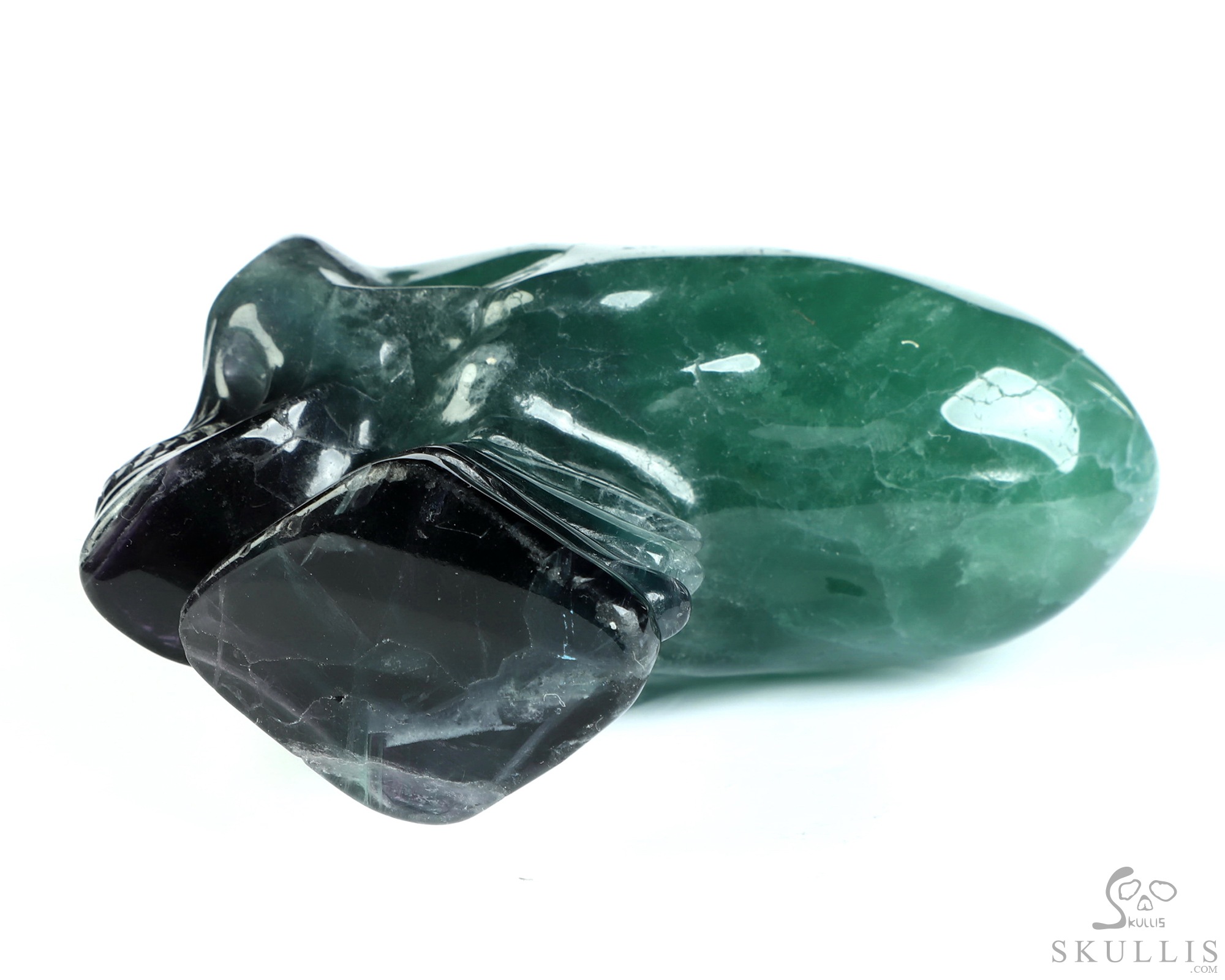 6.1" Fluorite Carved Crystal Skull & Owl Sculpture, Crystal Healing