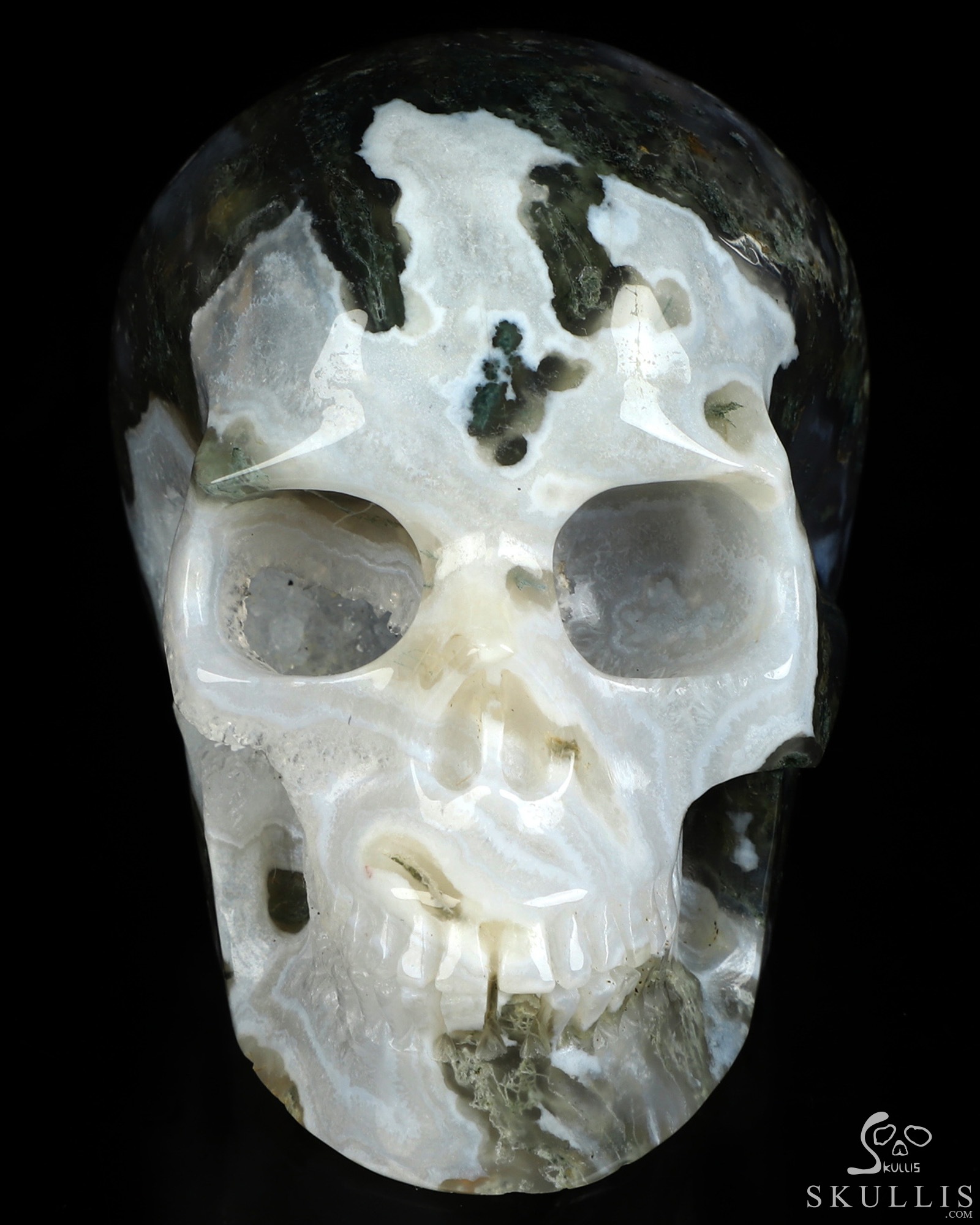 5.0" Green Moss Agate Hand Carved Crystal Skull, Realistic, Crystal Healing