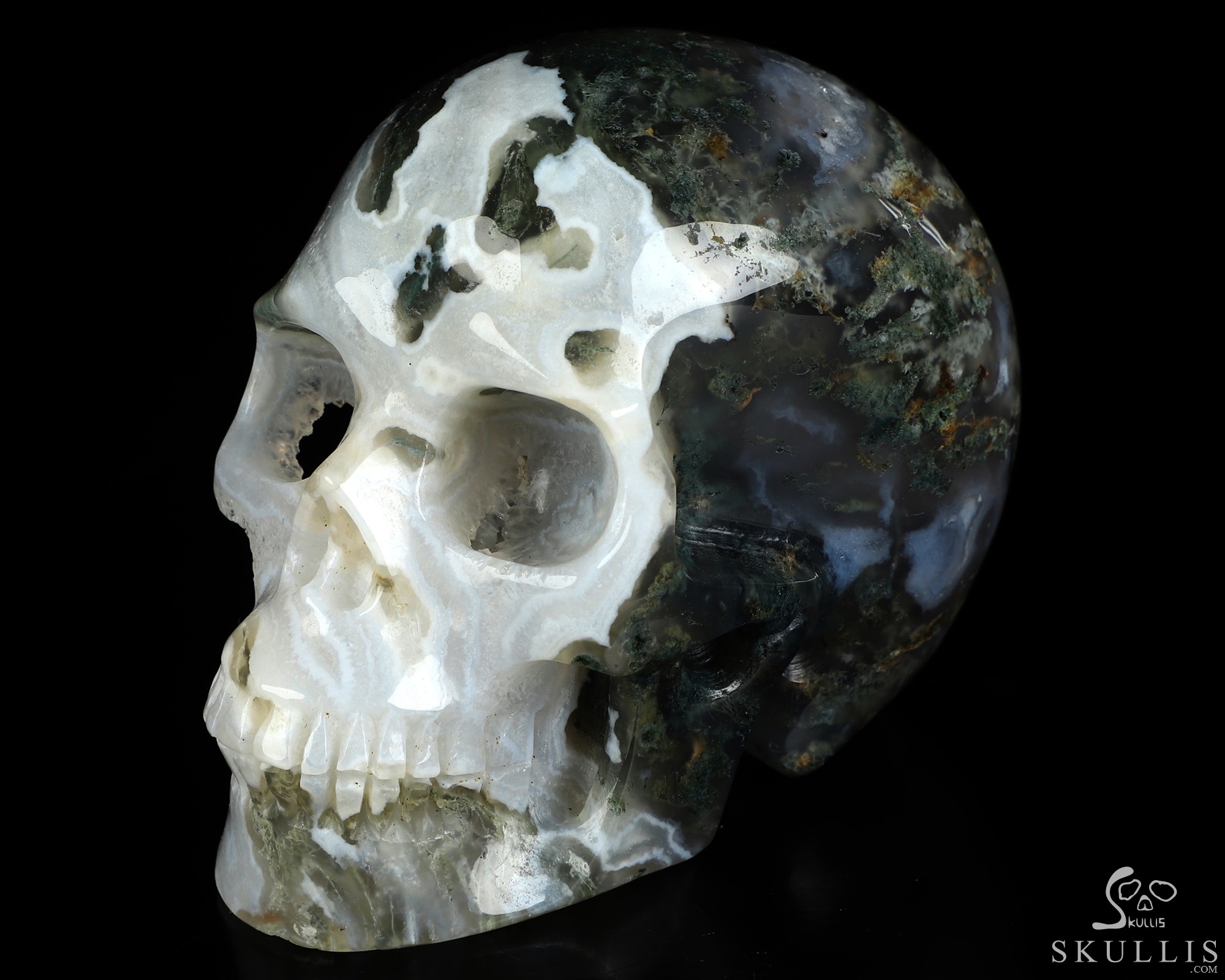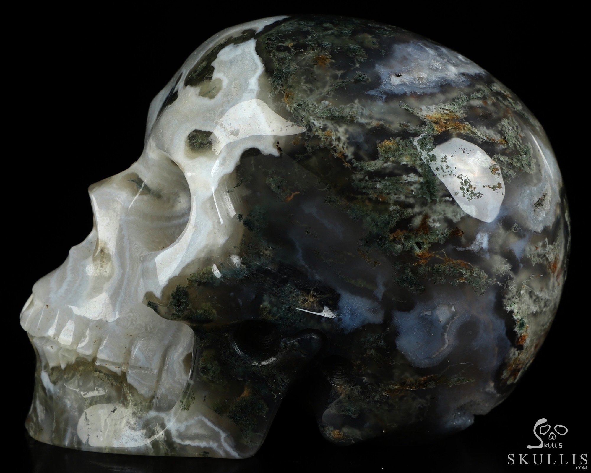 5.1" Green Moss Agate Hand Carved Crystal Skull, Super Realistic, Crystal Healing