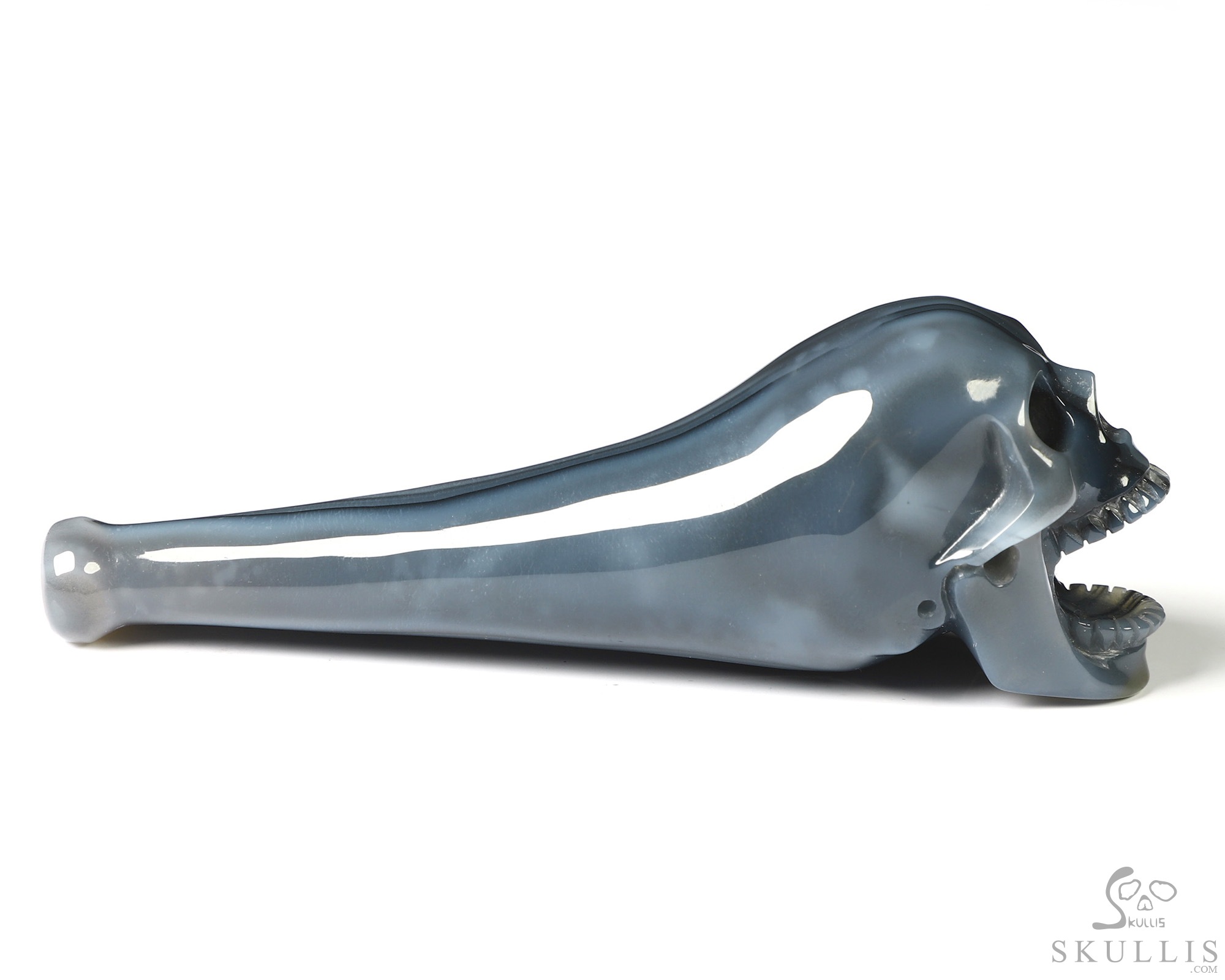 3.5" Premium Brazilian Agate Hand Carved Crystal Skull Pipe, Crystal Healing