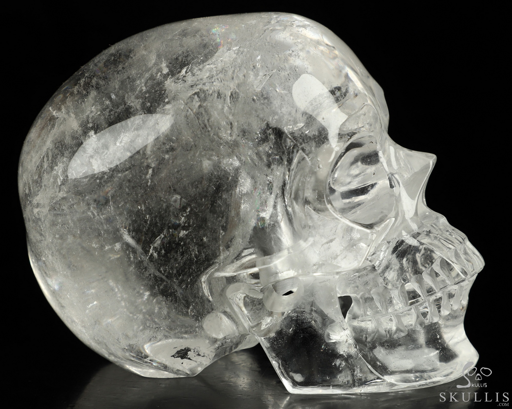 Rainbow Clear Huge 5.7" Quartz Rock Crystal Carved Crystal Skull, Super Realistic